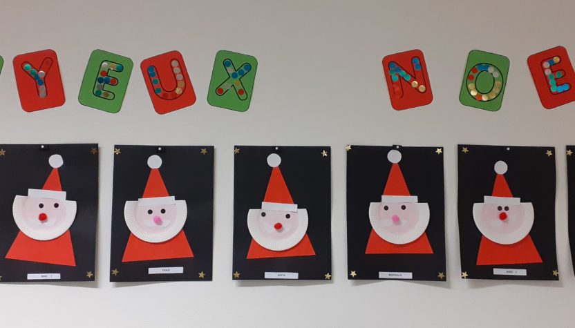 Au mois de décembre, nous avons: réalisé des portraits de Père Noël, décoré le sapin, installé la crèche, cuisiné des cookies, visité la crèche de l’église, préparé un petit cadeau à mettre dans le sapin, écouté des histoires de Noël…