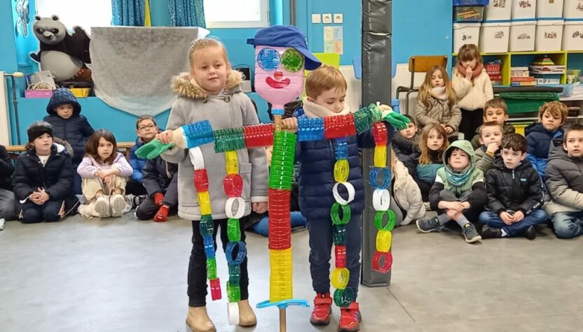 Vendredi 10 janvier, après la célébration sur le thème de l’épiphanie, tous les enfants se sont rassemblés dans la salle de motricité. Chaque classe a pu présenter ce qu’elle avait réalisé sur le thème du jardin : chouettes, épouvantails, moulins à vent. Toutes ces productions serviront à embellir la cour et le jardin.
