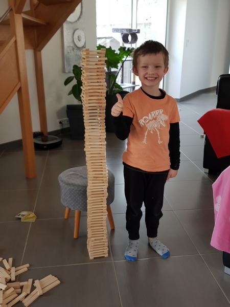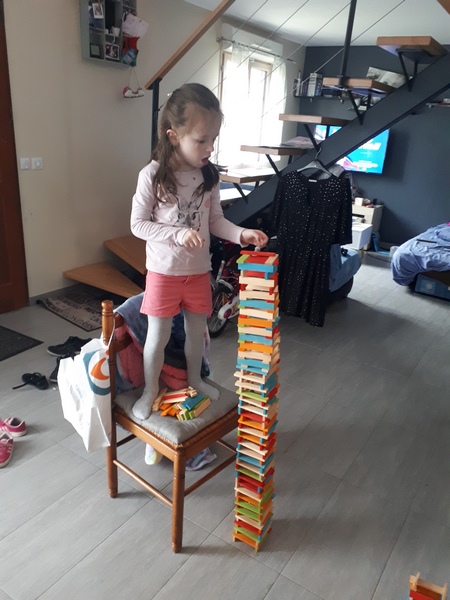Alors, pour débuter cette période tellement étrange, nous leur avons lancé un petit défi : « réaliser la plus haute tour possible en kaplas ou autres objets de la maison » ! Il ne vous reste plus qu’à admirer … c’est juste magnifique !