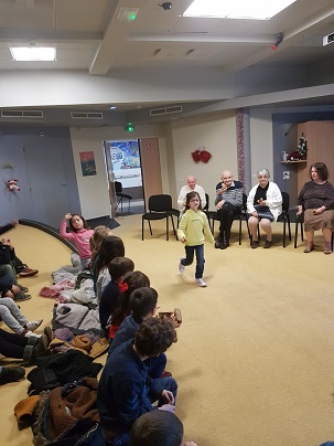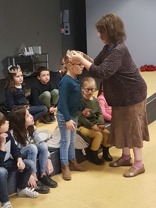 Jeudi 16 janvier, nous sommes allés partager une galette des rois avec quelques résidents du foyer de vie.Les rois et les reines ont été couronnés par Michelle qui vient à l’école régulièrement nous lire des histoires.Nous avons terminé ce temps de partage par une chanson.