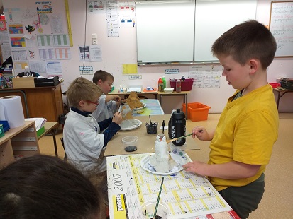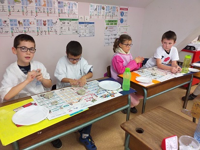 Les enfants ont goûté à la joie de travailler l’argile : les CE2 créaient des objets, les CM1 fabriquaient une maquette de volcan…