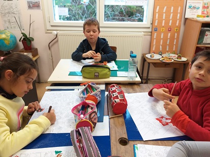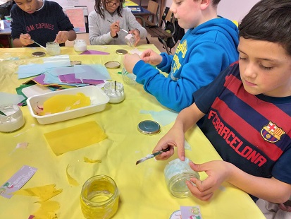 Nous avons aussi fait des ateliers de bricolage : des sous-mains de Noël, des atlas géants de l’Europe, des guirlandes originales et des pots à offrir à nos parents.