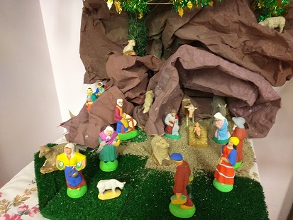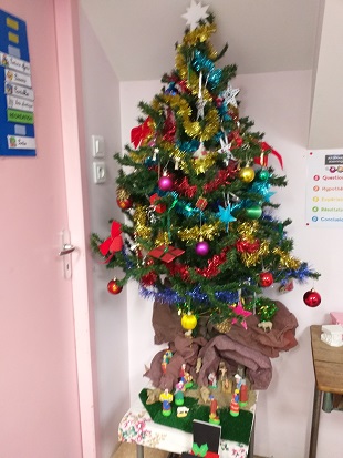 Dans la classe, nous avons fait le sapin et la crêche.