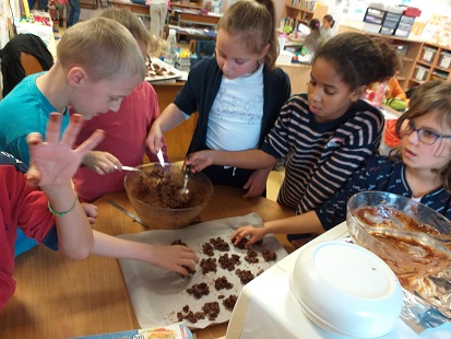 Nous avons cuisiné : nous avons confectionné des roses des sables.