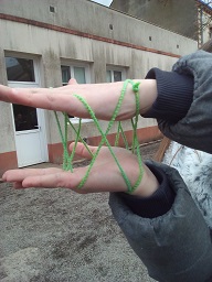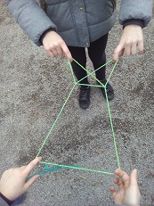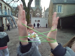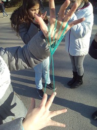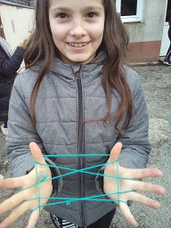 Depuis le retour des vacances de Noël, les enfants se sont mis à jouer au ztringz sur la cour d’école. Nous voyons apparaitre aux quatre coins de la cour des figures faites à partir d’un bout de ficelle: la Tour Eiffel, l’étoile, la robe de soirée, le tambourin…