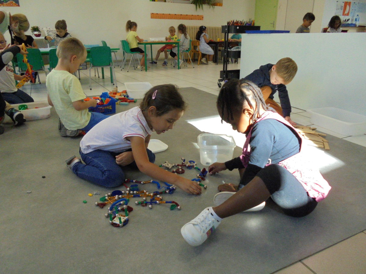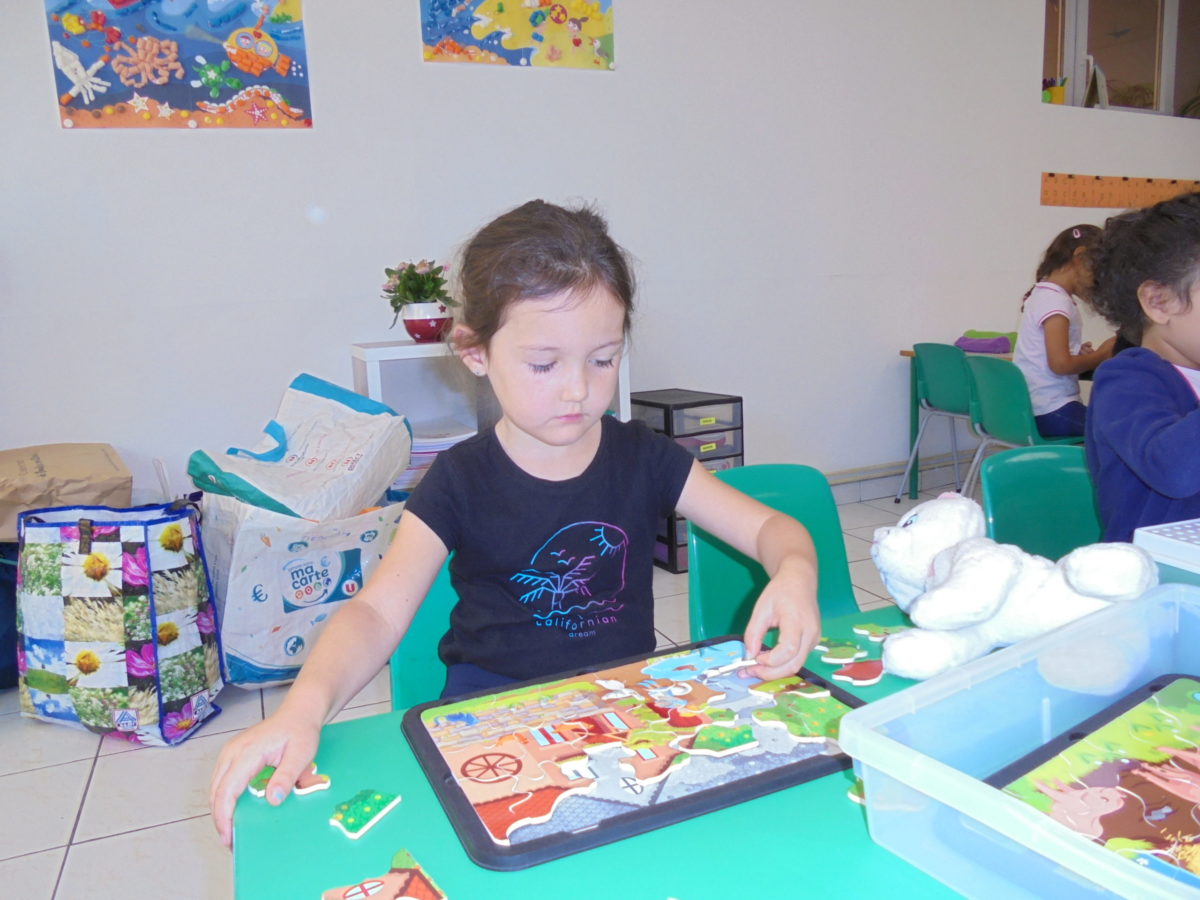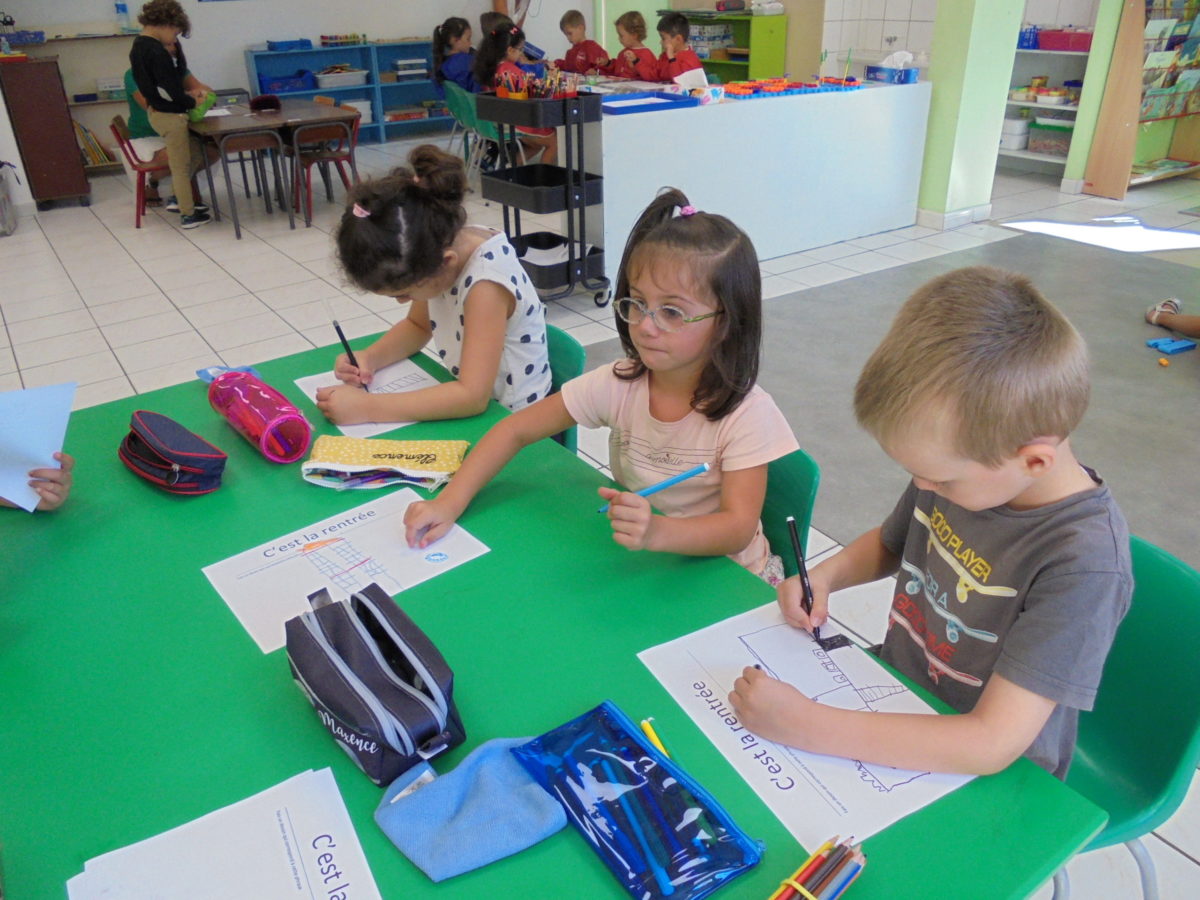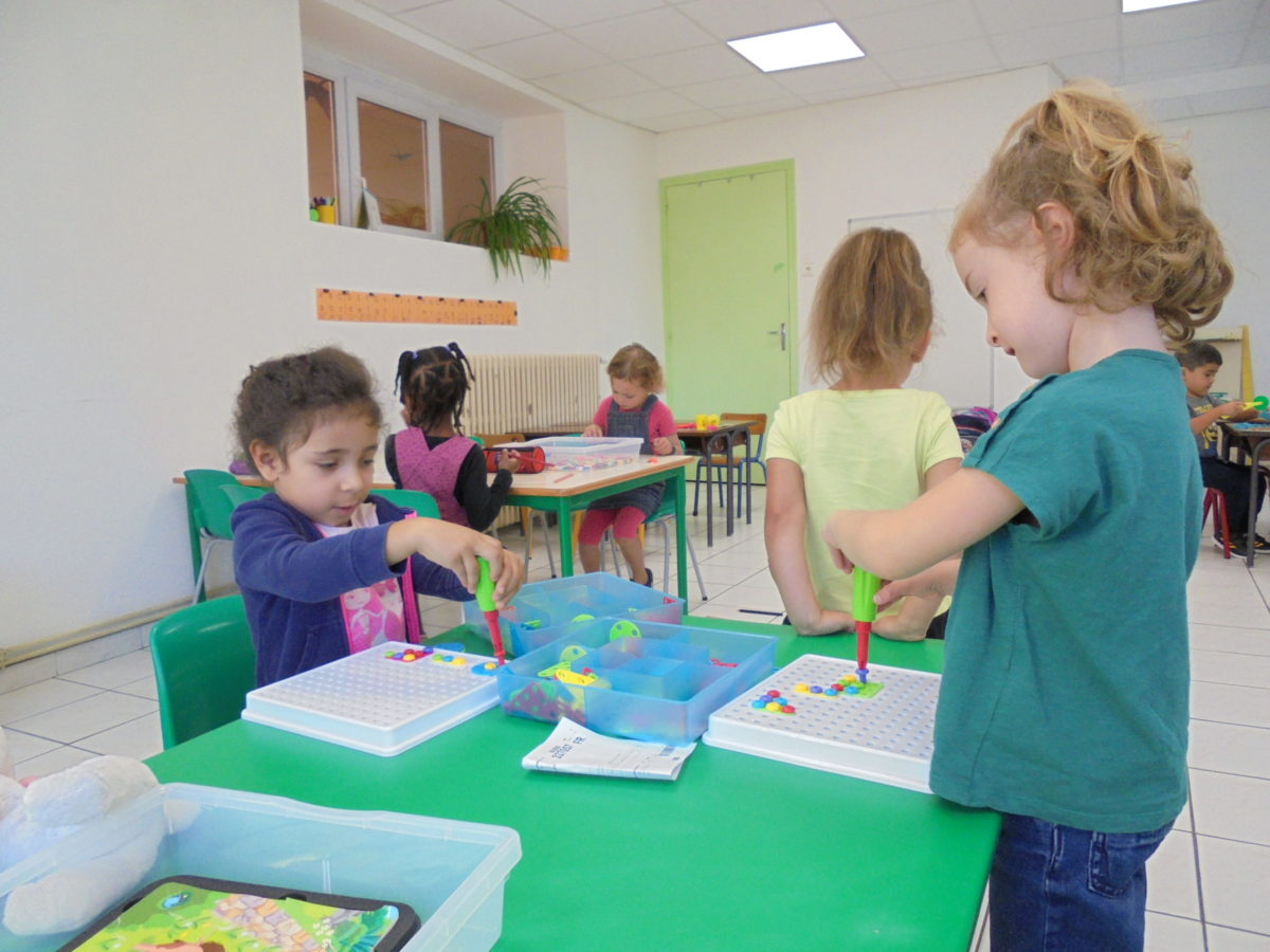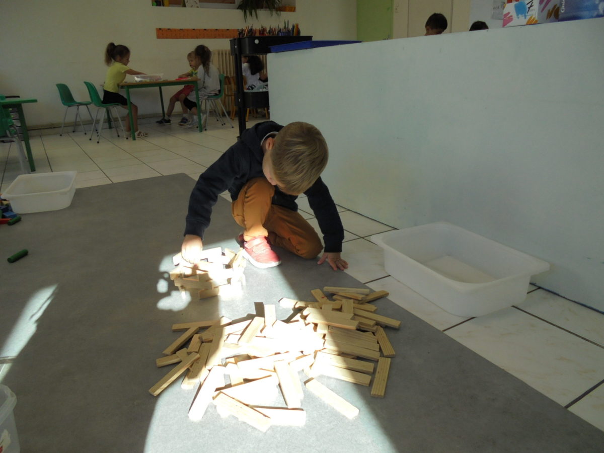Pour le moment, nous faisons différentes activités et de la motricité. Nous venons juste de commencer nos ateliers autonomes avec des tiroirs, c’est chouette mais il faut apprendre à s’organiser donc il faut du temps quand même …