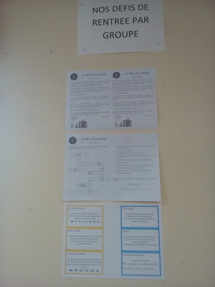 Pour les 1ers jours nous avons relevé des défis de lecture, de mathématiques, de mots croisés, d’écriture et reconstitué notre phrase mystère.