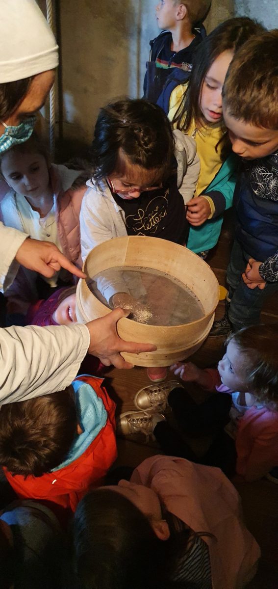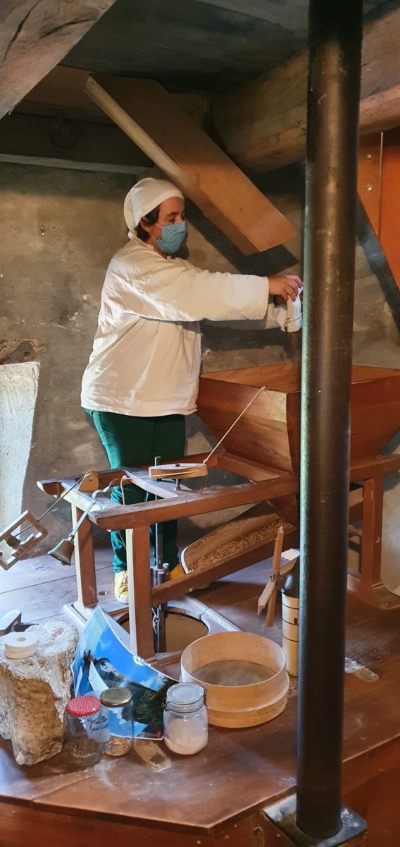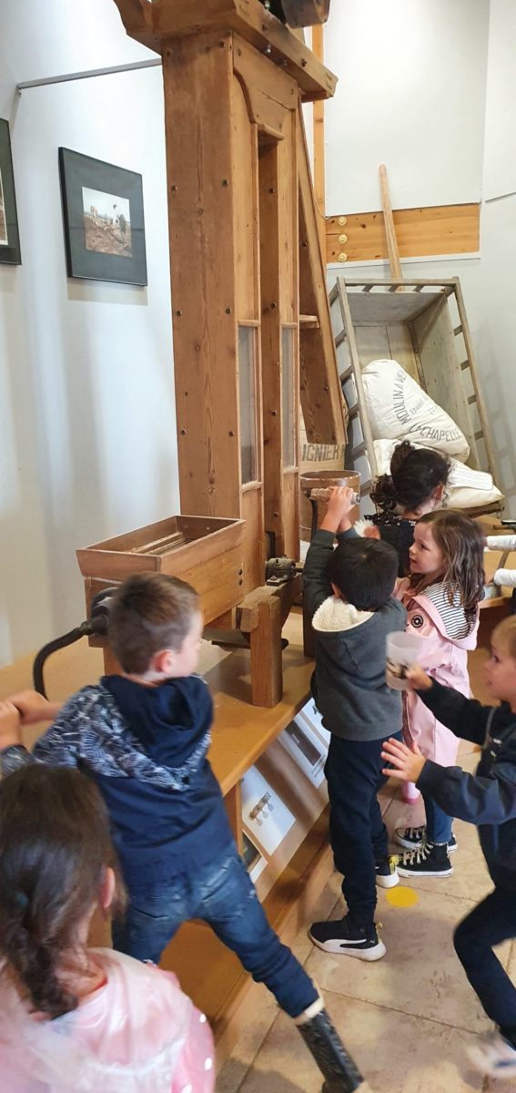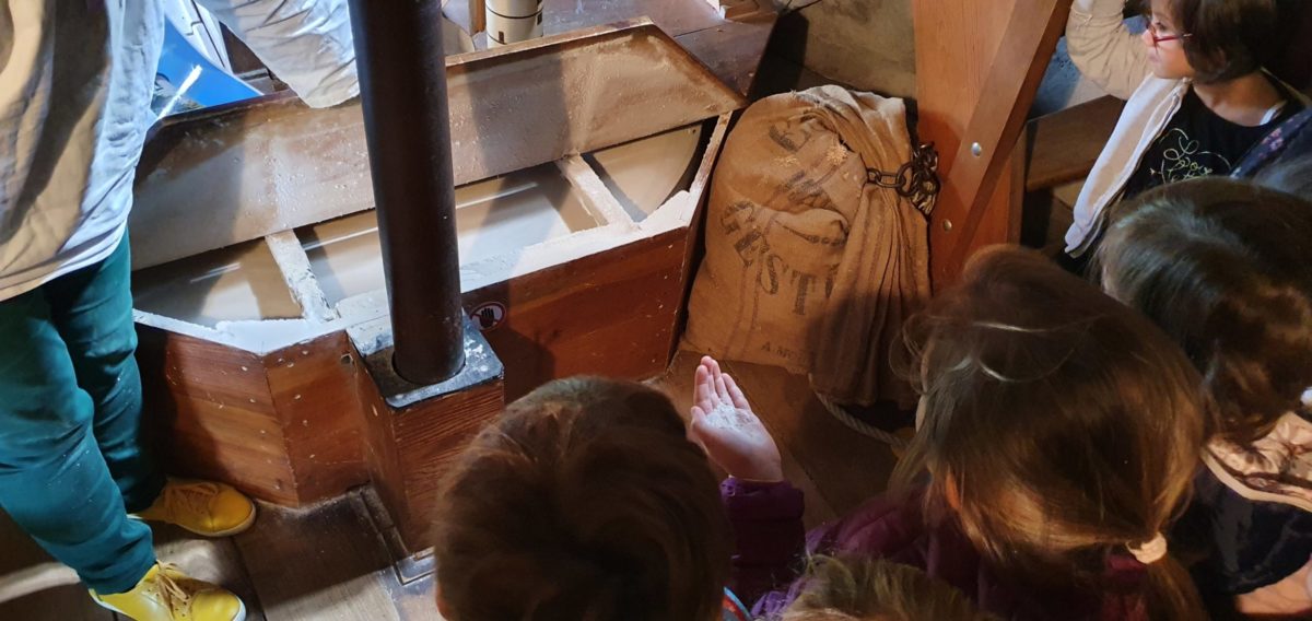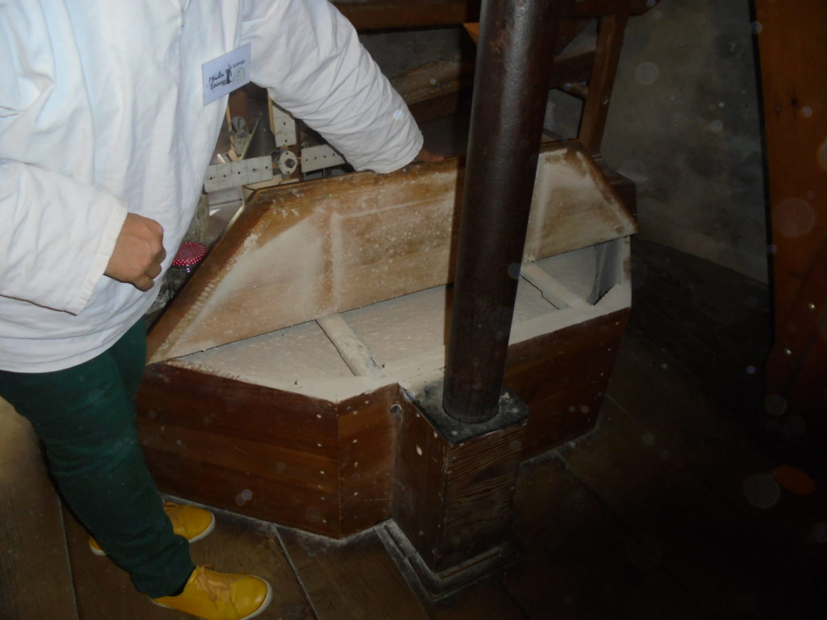L’après-midi, nous avons visité le moulin et découvert comment les meules pouvaient écraser les grains de blé. Ensuite, nous avons observé les différentes étapes pour obtenir à la fin une belle farine bien blanche.