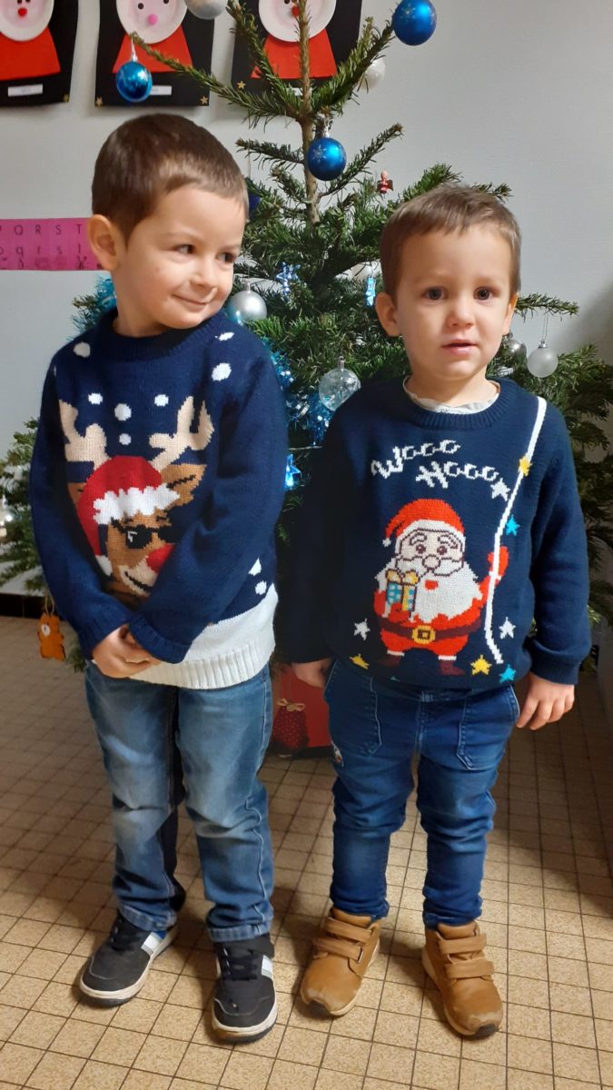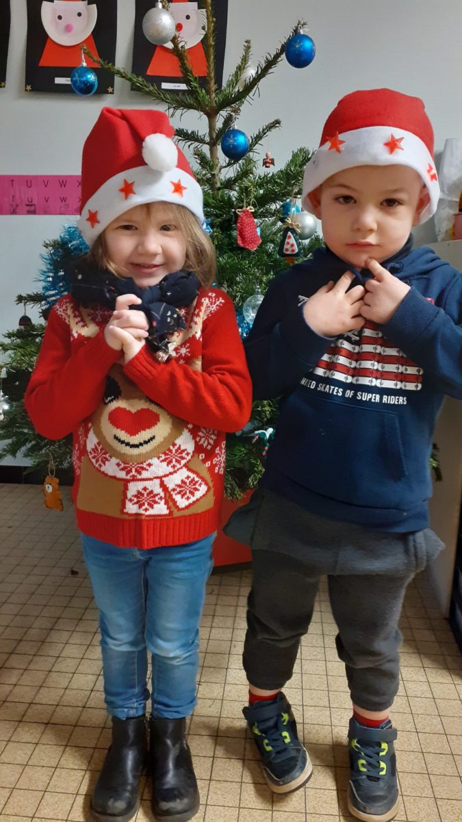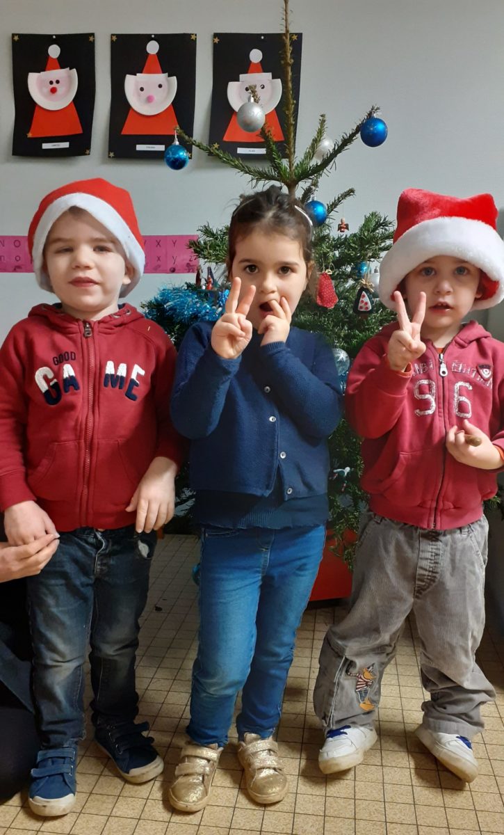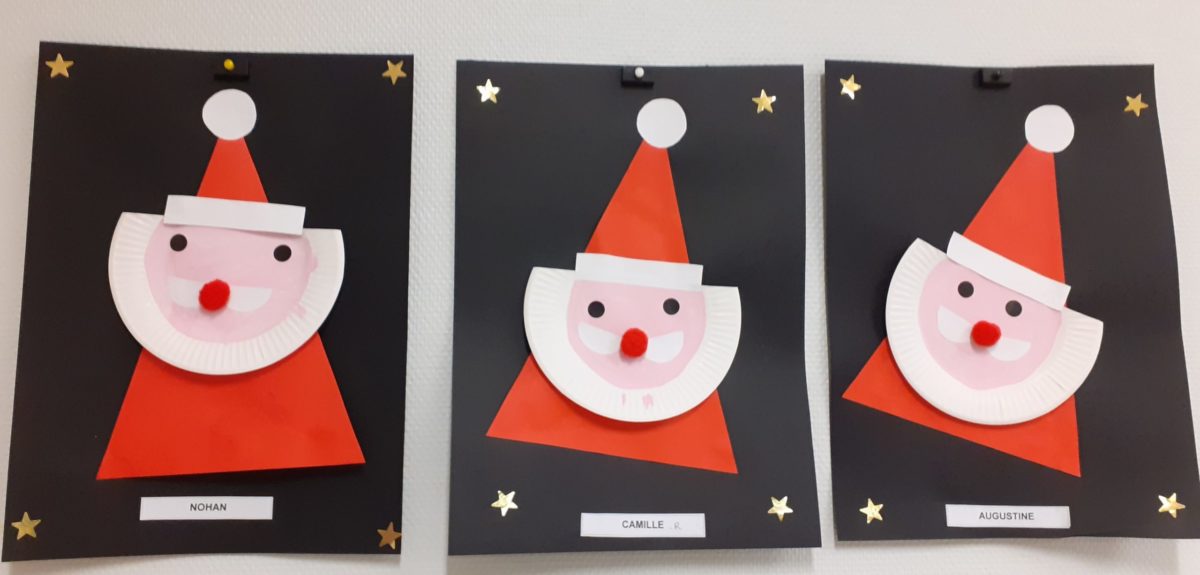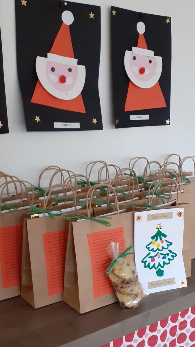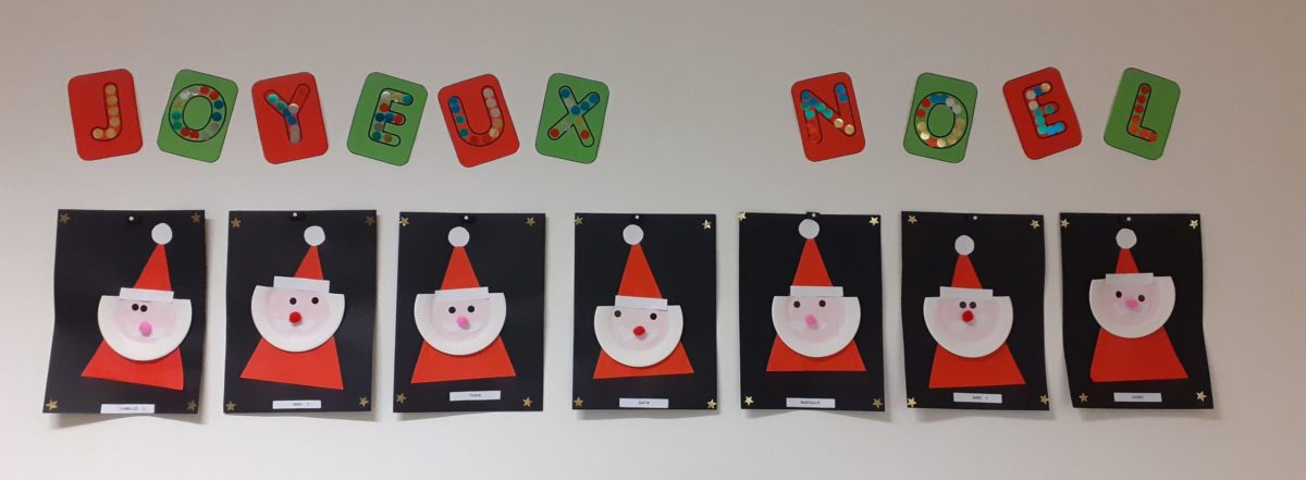 Au mois de décembre, nous avons: réalisé des portraits de Père Noël, décoré le sapin, installé la crèche, cuisiné des cookies, visité la crèche de l’église, préparé un petit cadeau à mettre dans le sapin, écouté des histoires de Noël…