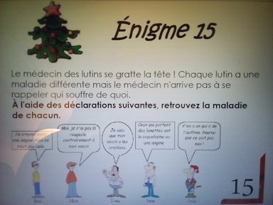 Afin de préparer ce temps de l’Avent, la maîtresse nous a concocté quelques énigmes de Noël à résoudre. A l’intérieur de ce calendrier que nous tirons chaque jour nous y trouvons aussi une douceur chocolatée et une petite mission de bienveillance à réaliser envers autrui.