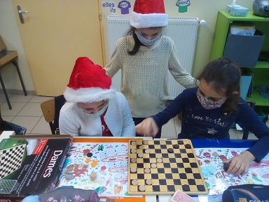 En cette veille de vacances, nous prenons un peu plus le temps de nous amuser afin de terminer cette période dans la bonne humeur. Le Père Noël est aussi passé nous apporter un livre: « Au temps du Moyen Age » pour les CM2 et « 100 infos à connaitre sur les chiens » pour les CM1. Passez de bonnes fêtes et à l’année prochaine!!