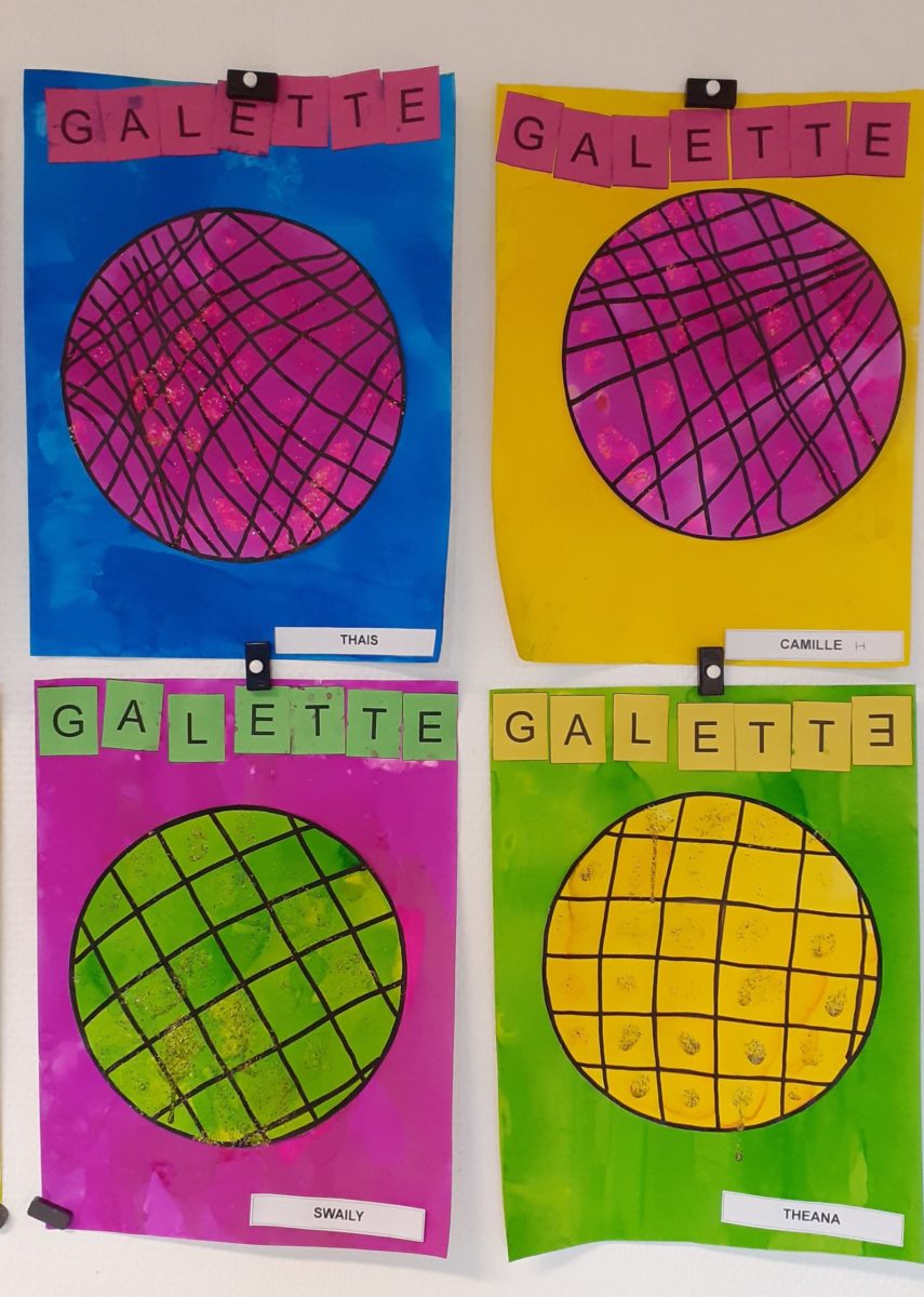 Au mois de janvier, nous avons fait de jolies galettes à la manière d’Andy WARHOL, décoré nos couronnes des reines et des rois avec des gommettes, participé au défi des couronnes, écouté l’histoire de « Roule galette » et bien sûr partagé un morceau de galette avec la classe de Laurence.