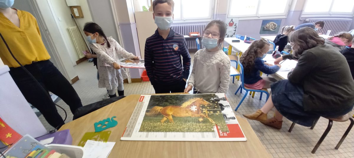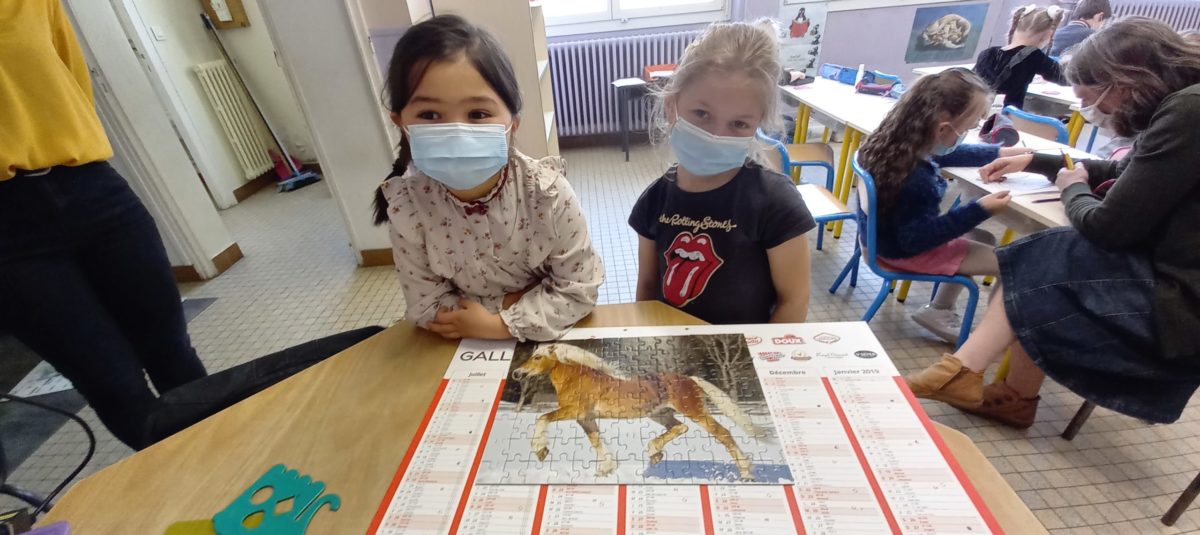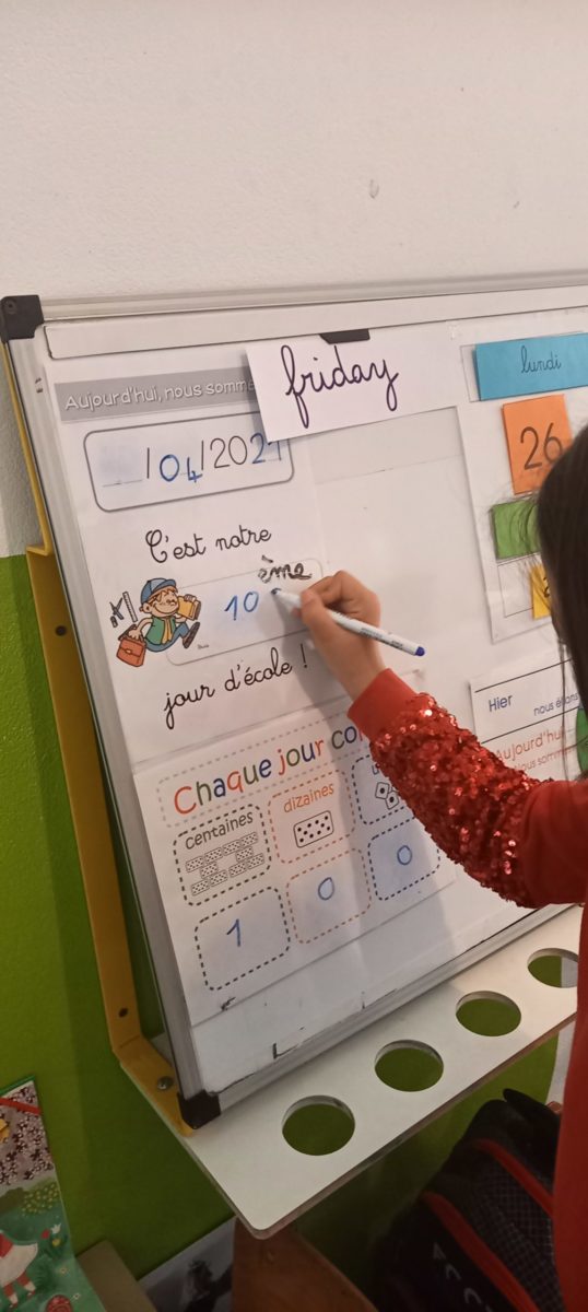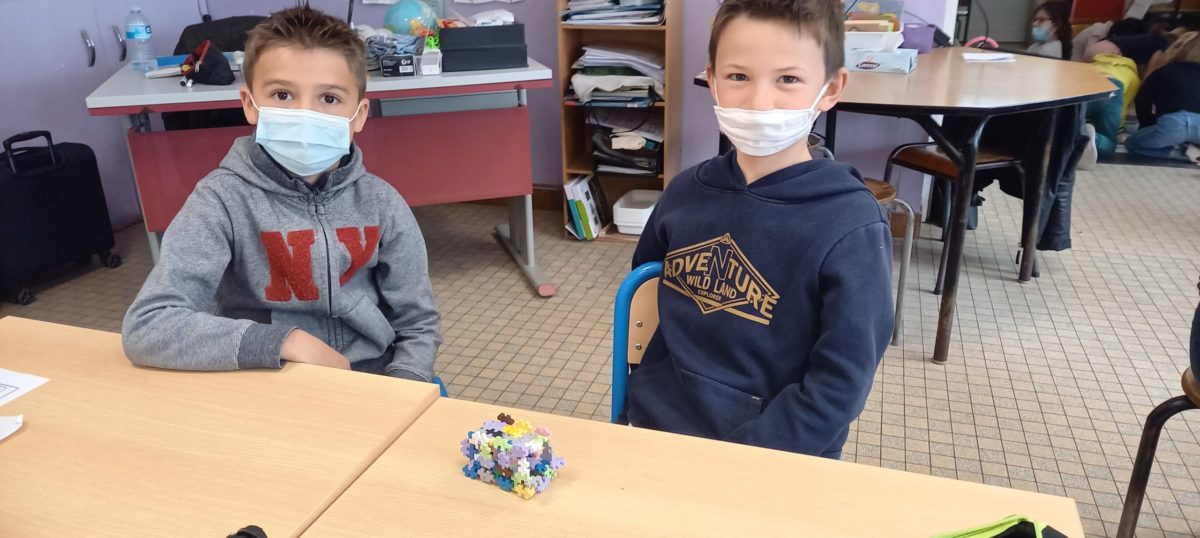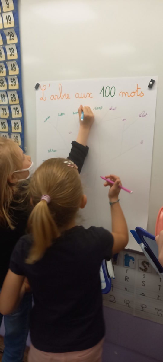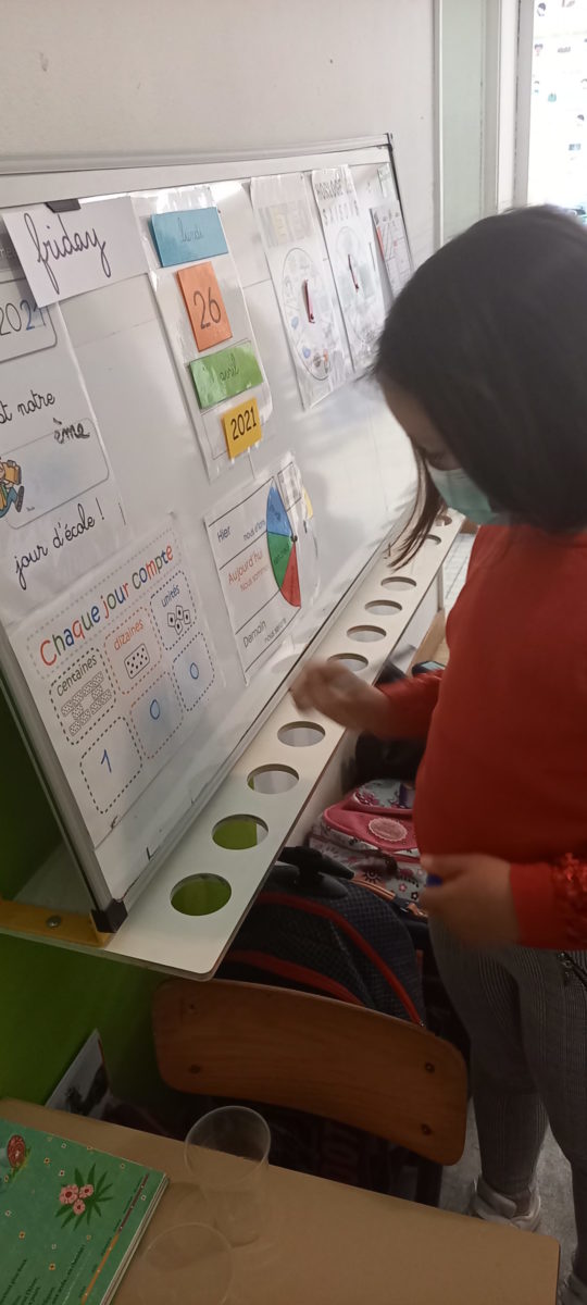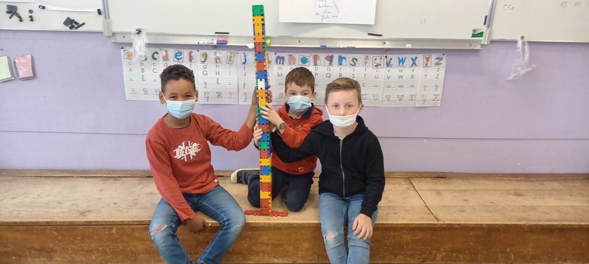 Lundi 26 avril, c’était notre 100ème jour d’école. Pour l’occasion, Valérie nous avait préparé des défis : faire 100 calculs, écrire 100 mots, trouver 100 noms d’animaux, faire des puzzles et des constructions de 100 pièces, réaliser des colliers de 100 perles. Nous avons aussi formé le nombre 100 avec nos corps et fabriqué des lunettes et une cravate. Nous avons réussi tous les défis. A la fin de la journée, nous avons partagé un gâteau. Vive le 100ème jour d’école !