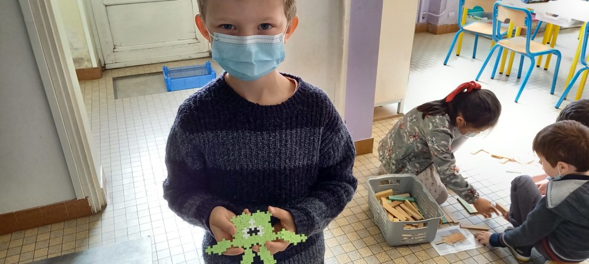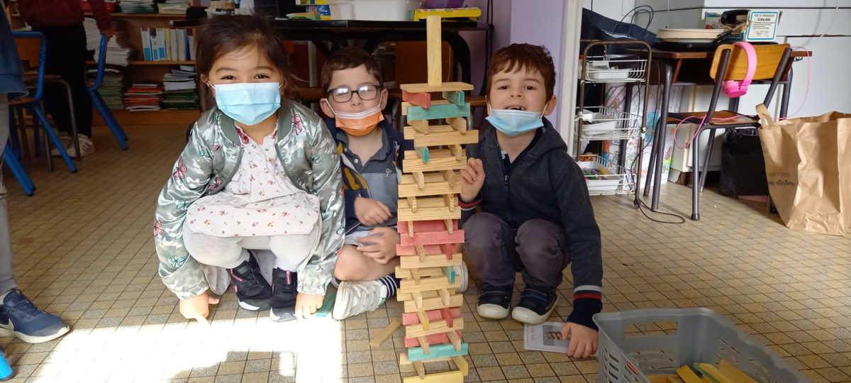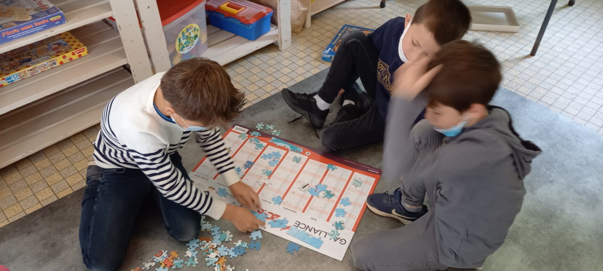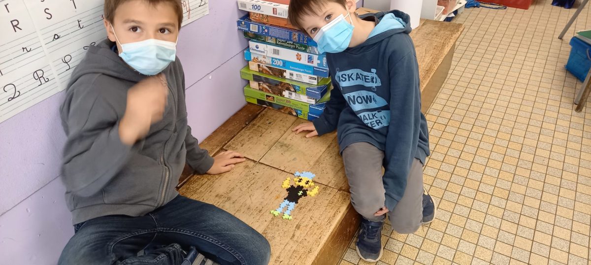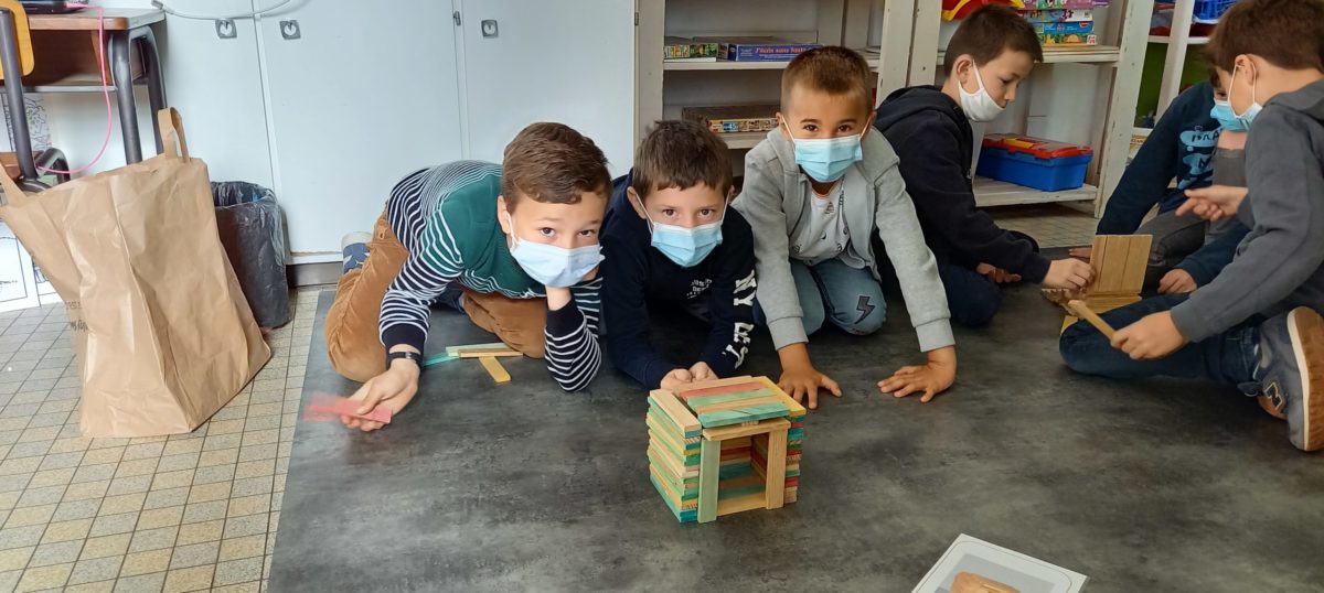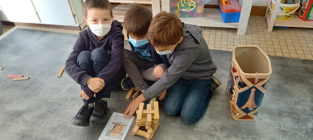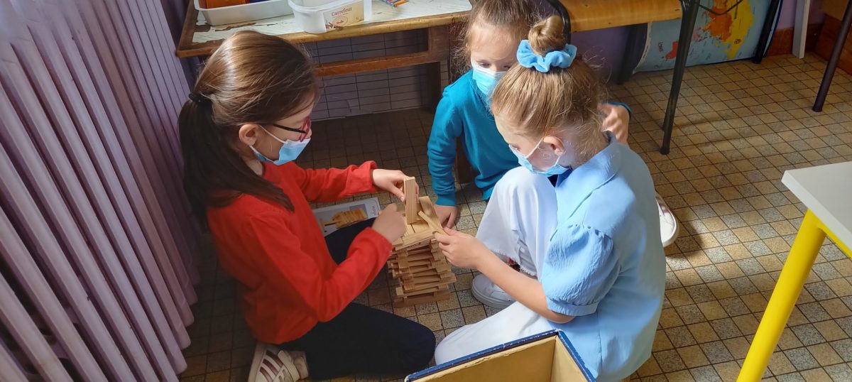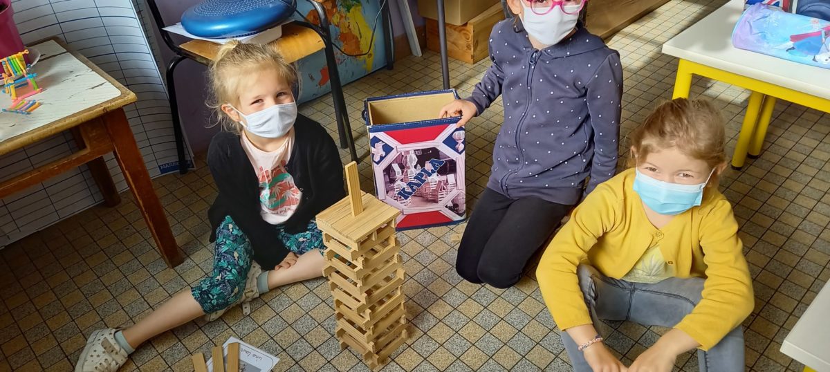 La semaine dernière, c’était la semaine sans cartable . Les enfants ont participé à des activités faisant appel à toutes leurs formes d’intelligence : bricolage, jeux de coopération, karaoké, écoute, jeu pour mieux se connaître et connaître les autres, défis puzzles, défis kaplas et ++, oeuvre collective sur le thème de la campagne, land’art. La semaine a été agréable et les enfants ont apprécié de faire des activités variées.