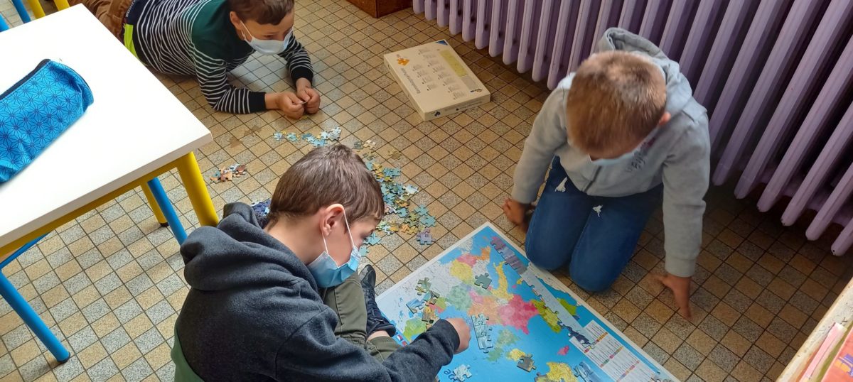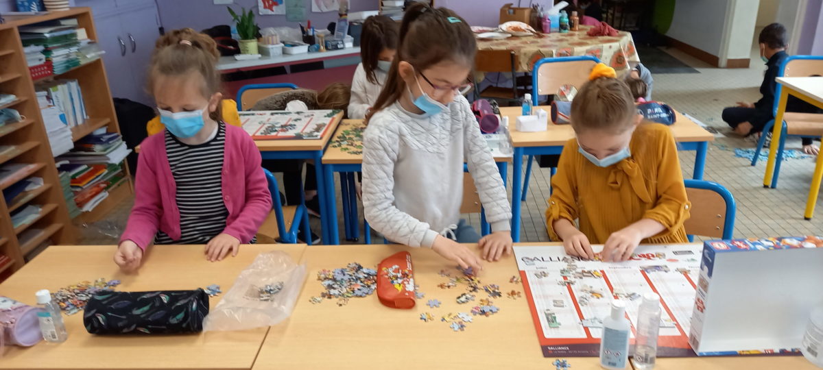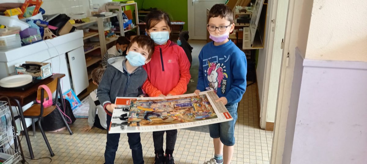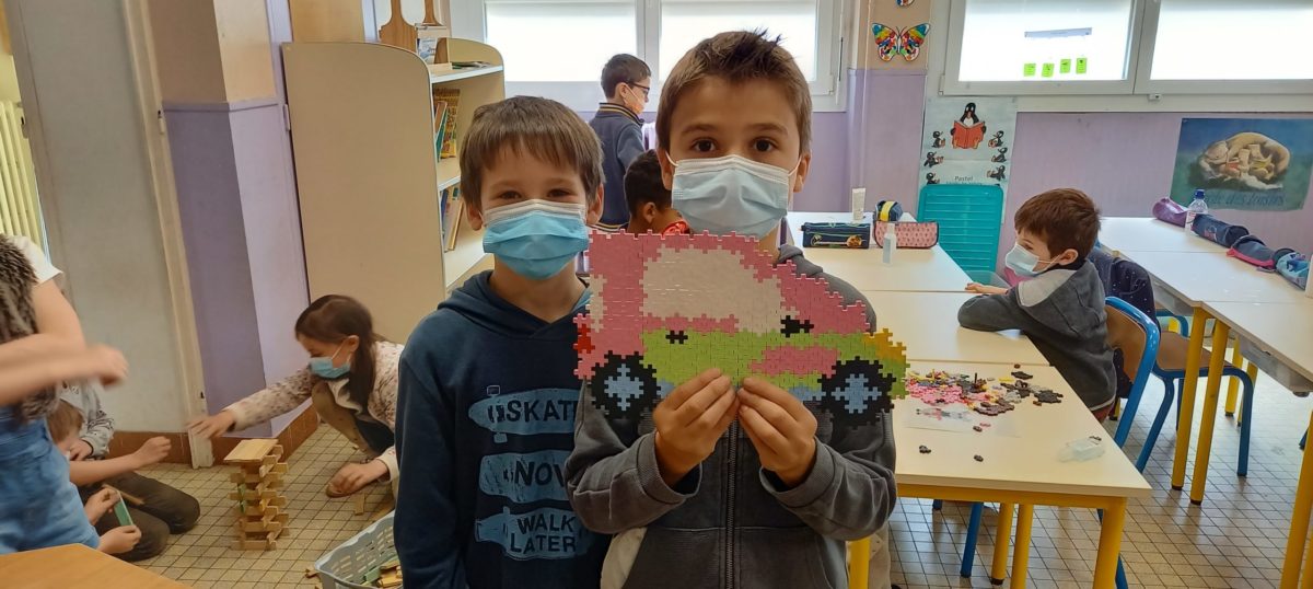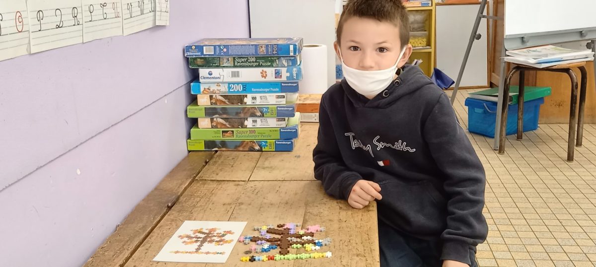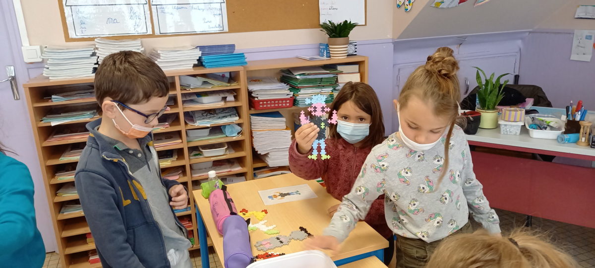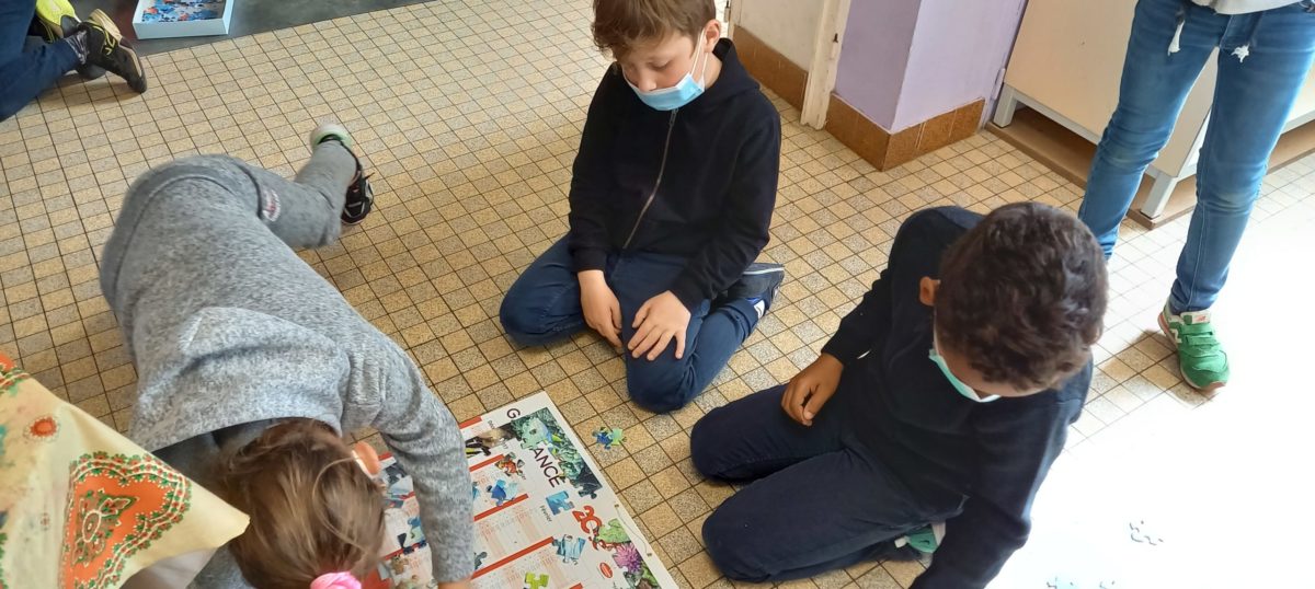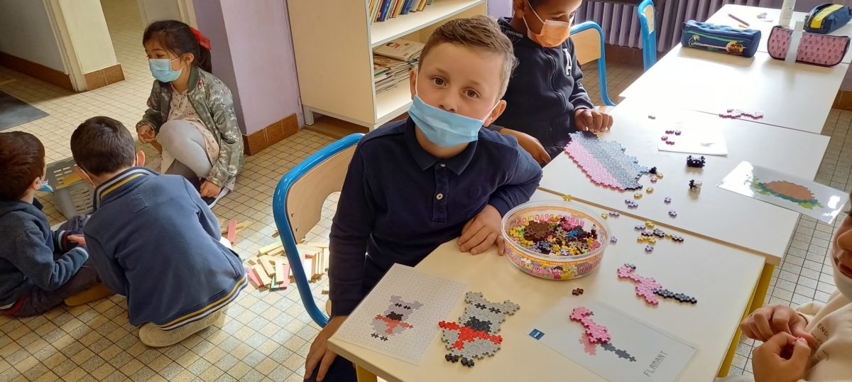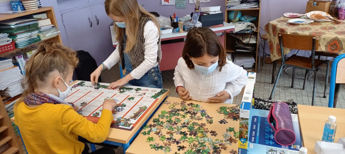 La semaine dernière, c’était la semaine sans cartable . Les enfants ont participé à des activités faisant appel à toutes leurs formes d’intelligence : bricolage, jeux de coopération, karaoké, écoute, jeu pour mieux se connaître et connaître les autres, défis puzzles, défis kaplas et ++, oeuvre collective sur le thème de la campagne, land’art. La semaine a été agréable et les enfants ont apprécié de faire des activités variées.