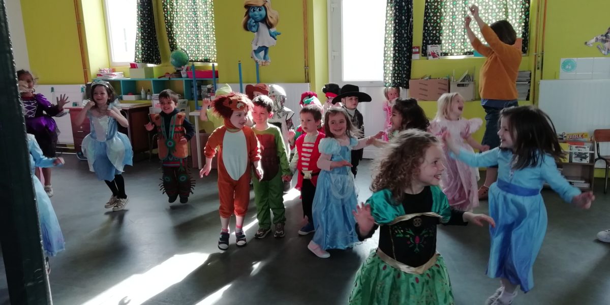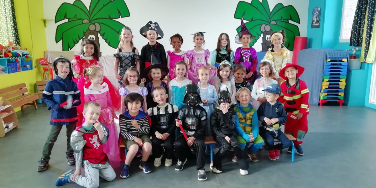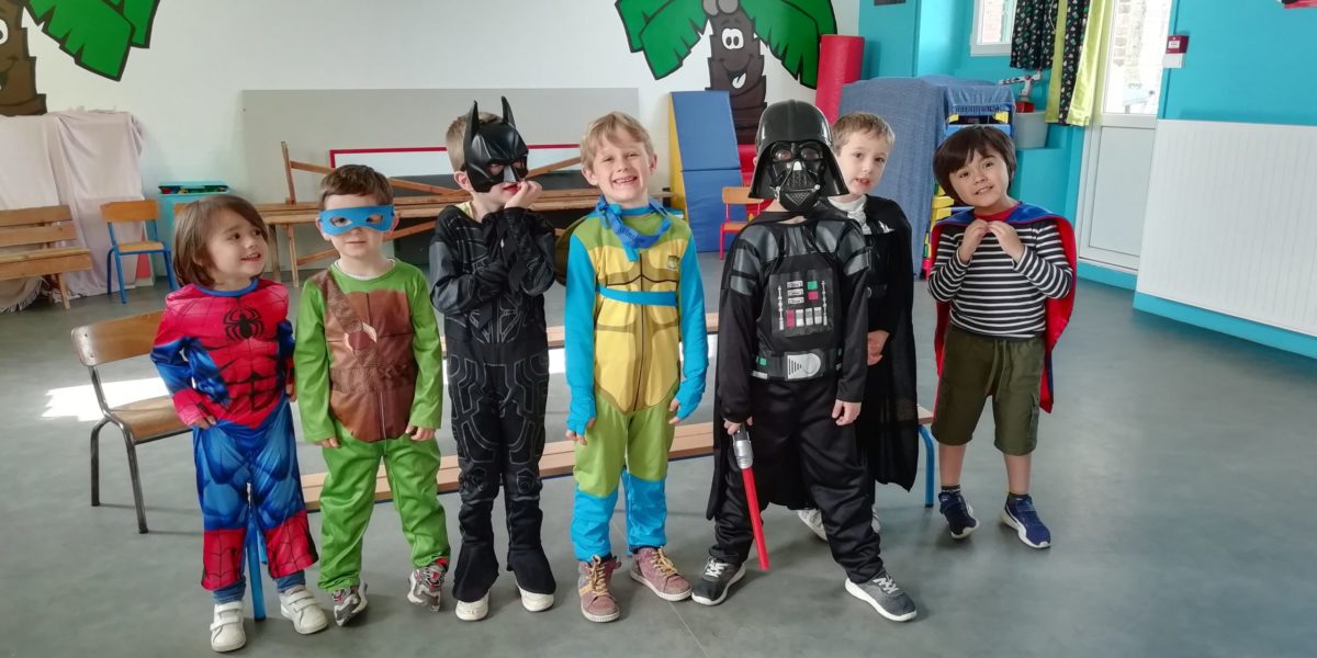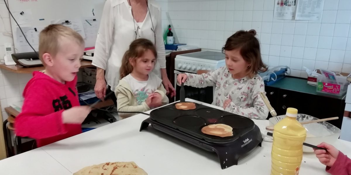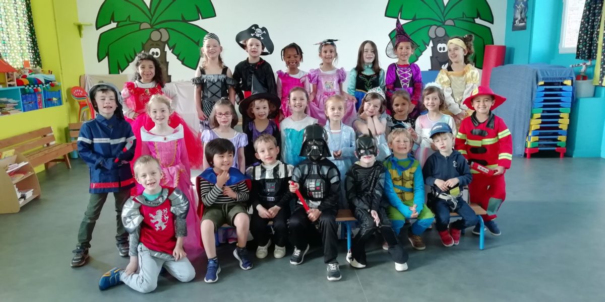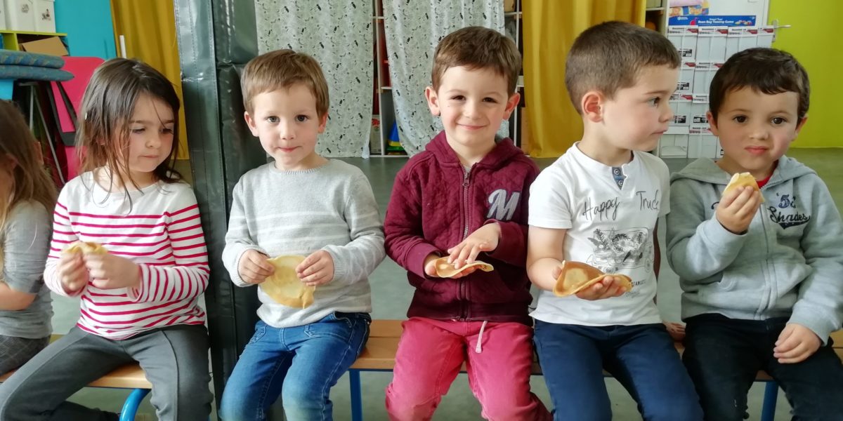 Au programme de cette journée : déguisements, retrouvailles dans la salle de motricité avec les élèves de la classe d’Elise, boum, confection de crêpes et goûter !