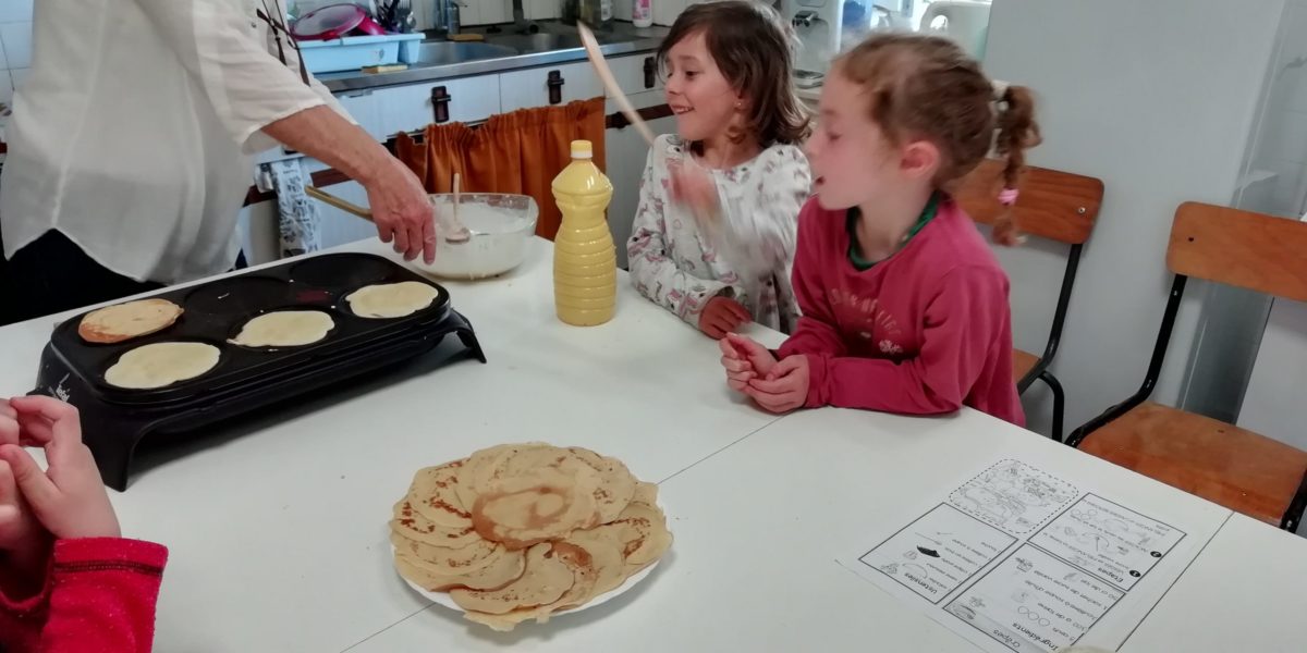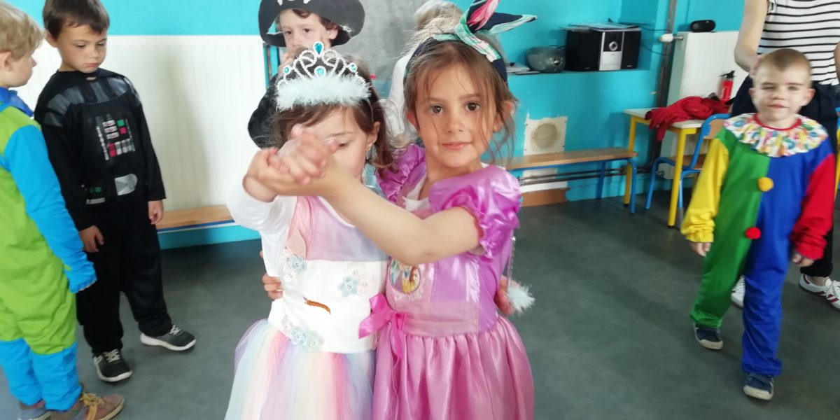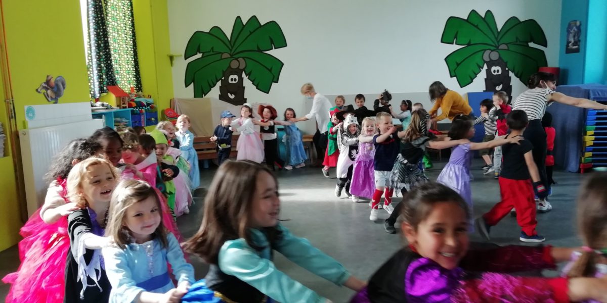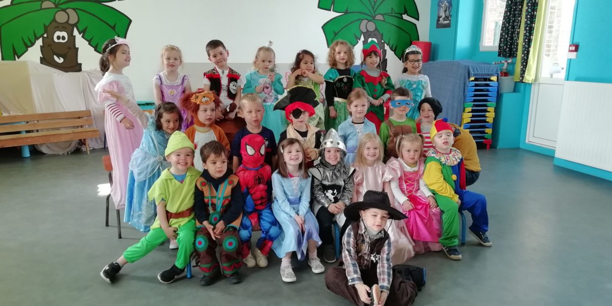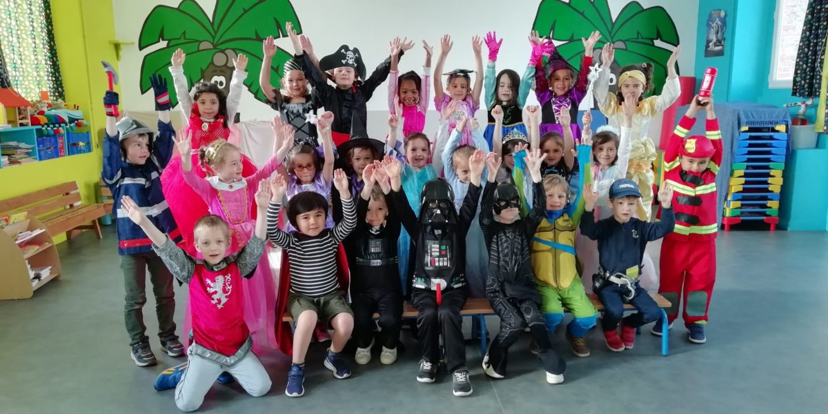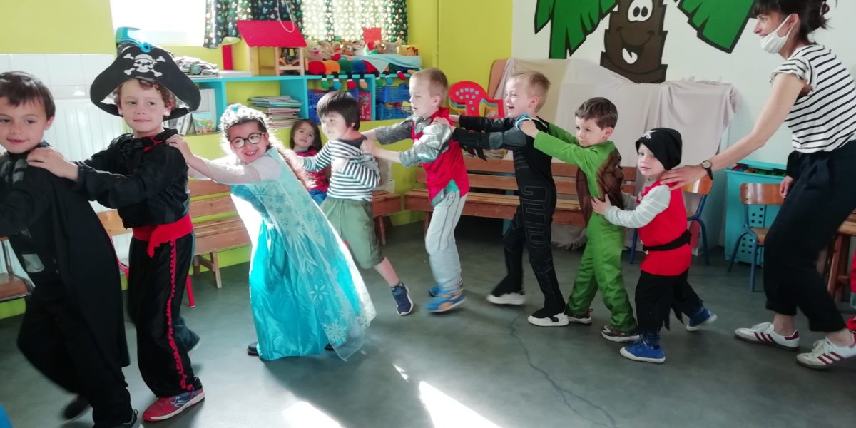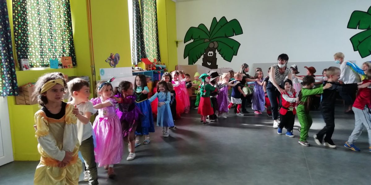 Au programme de cette journée : déguisements, retrouvailles dans la salle de motricité avec les élèves de la classe d’Elise, boum, confection de crêpes et goûter !