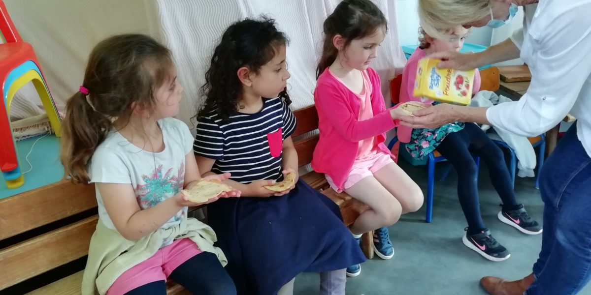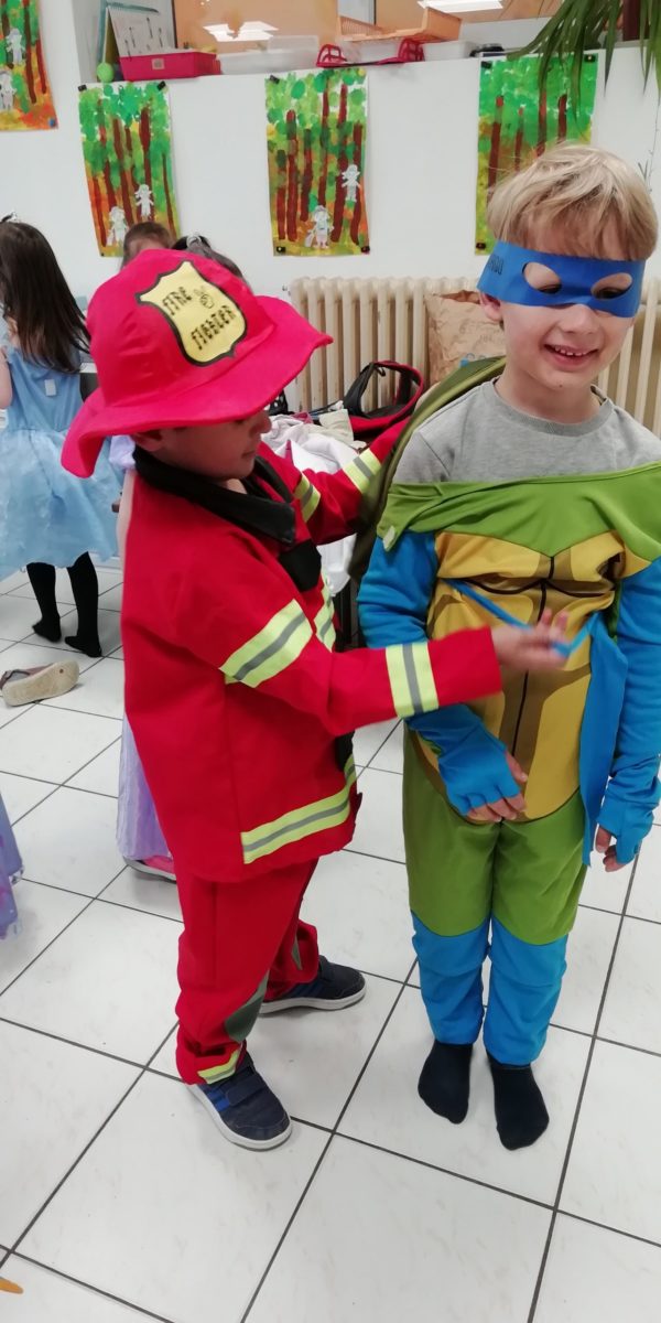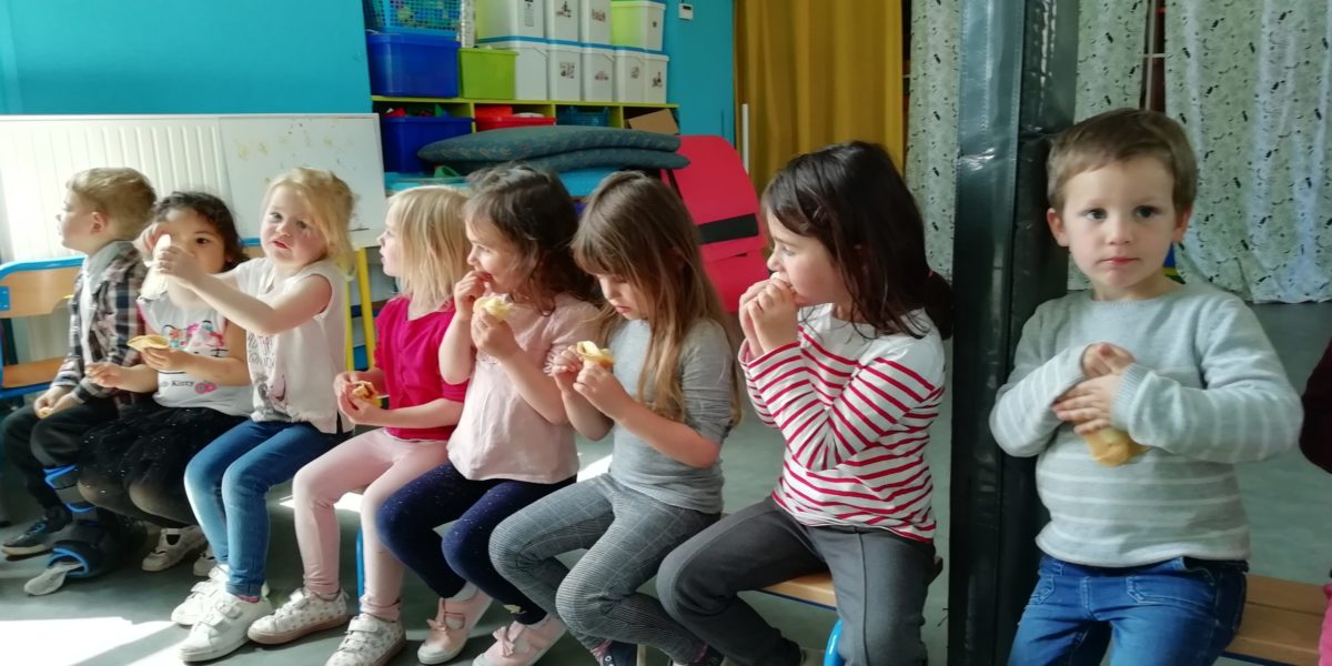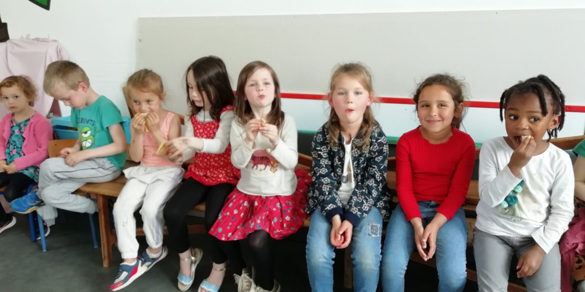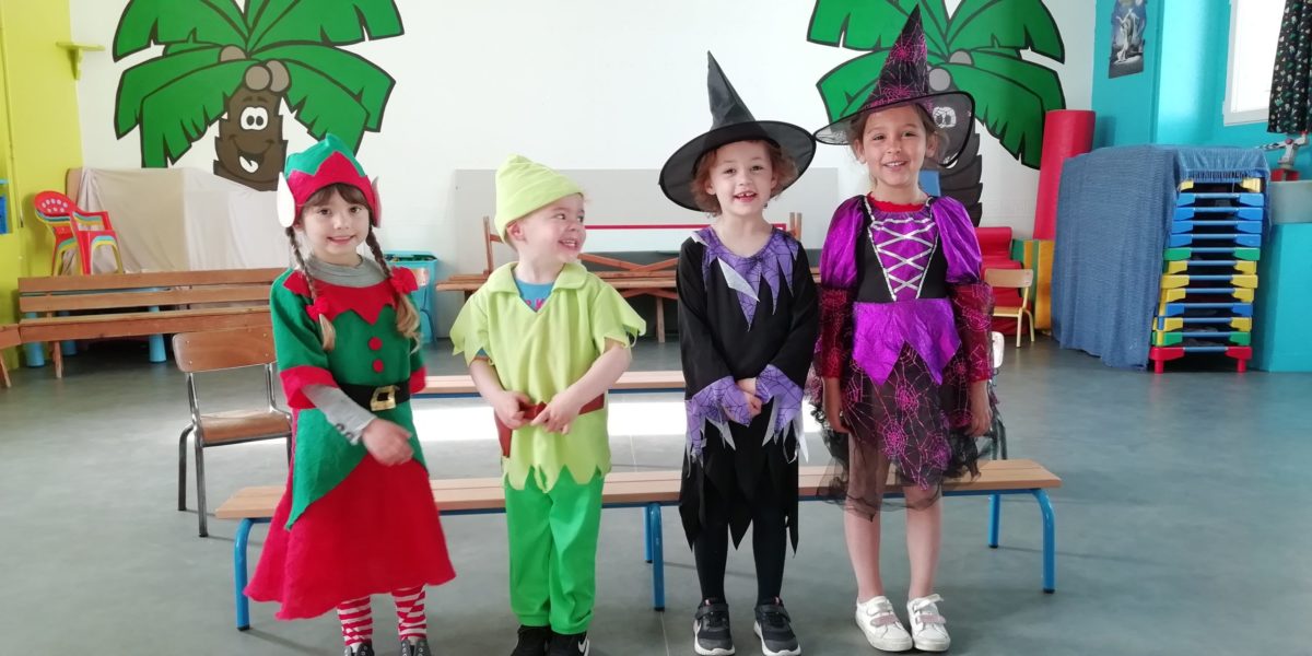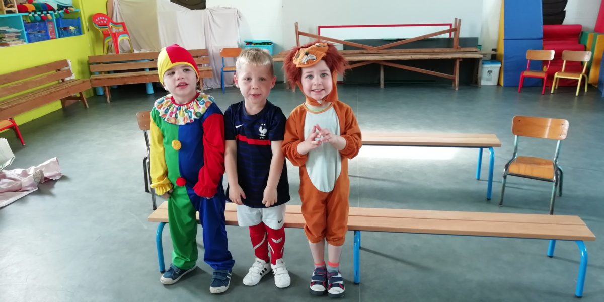 Au programme de cette journée : déguisements, retrouvailles dans la salle de motricité avec les élèves de la classe d’Elise, boum, confection de crêpes et goûter !