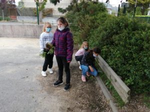 Pendant la semaine sans cartable, nous avons nettoyé l’école. Opération désherbage avec les CM1-CM2!