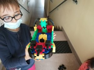 Nous avons également relevé des défis de constructions. En voici quelques photos! Nous construisons aussi, tous ensemble, une ville en cartons. Les photos suivront…