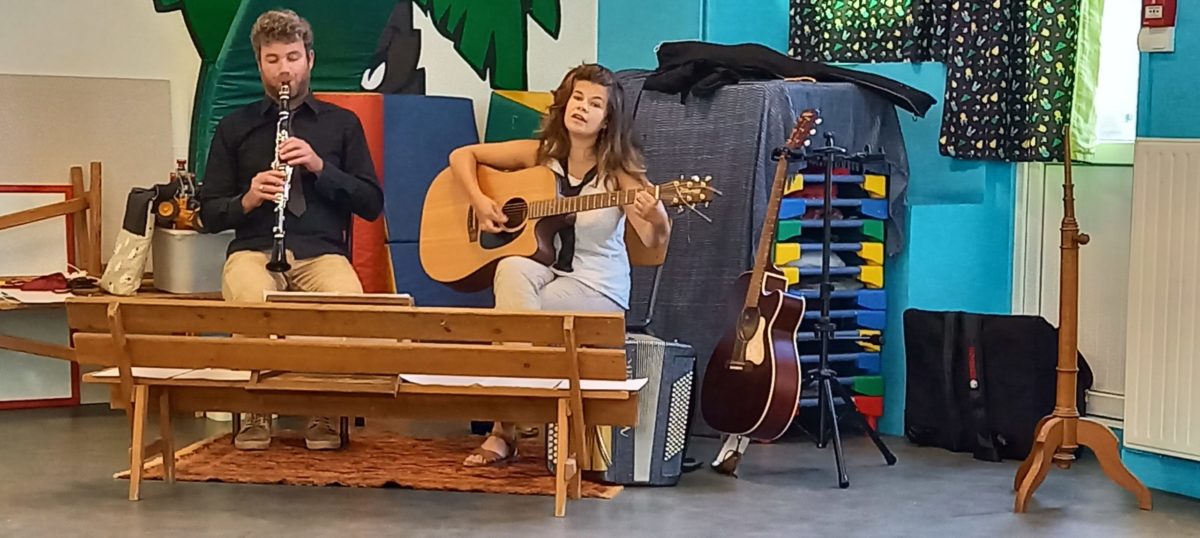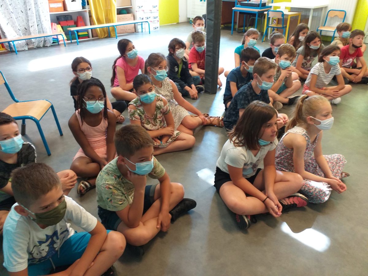 Les CE2 et les CM ont eux aussi découvert l’univers musical de Laura, intervenante en chant auprès des CP CE1 et CE2. Ils ont beaucoup apprécié.