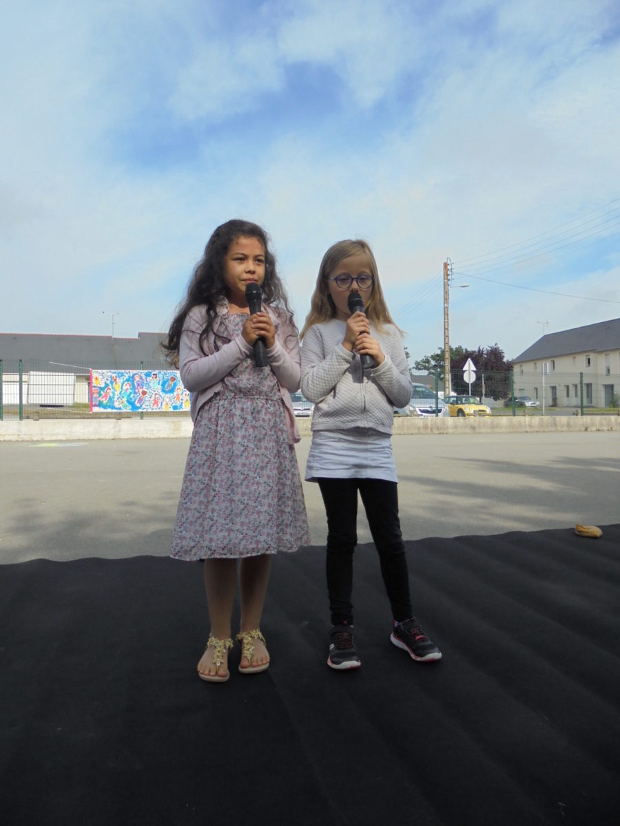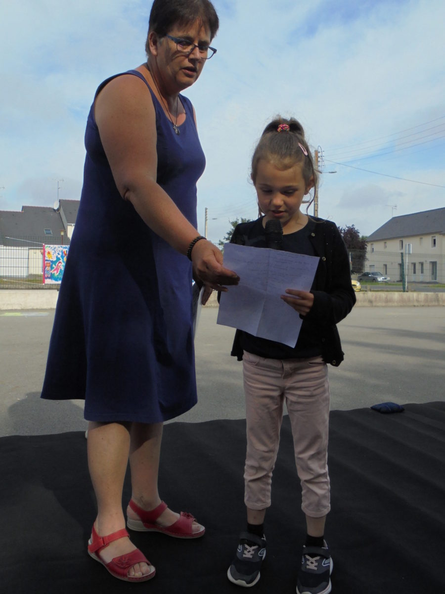 En fin de matinée, deux immenses talents ont été appelés à monter à leur tour sur la scène : Marie-Claire et Elise !! Elles quittent toutes deux l’école, Marie-Claire pour une retraite bien méritée et Elise pour découvrir (peut-être …) de nouveaux talents dans de nouvelles écoles !!