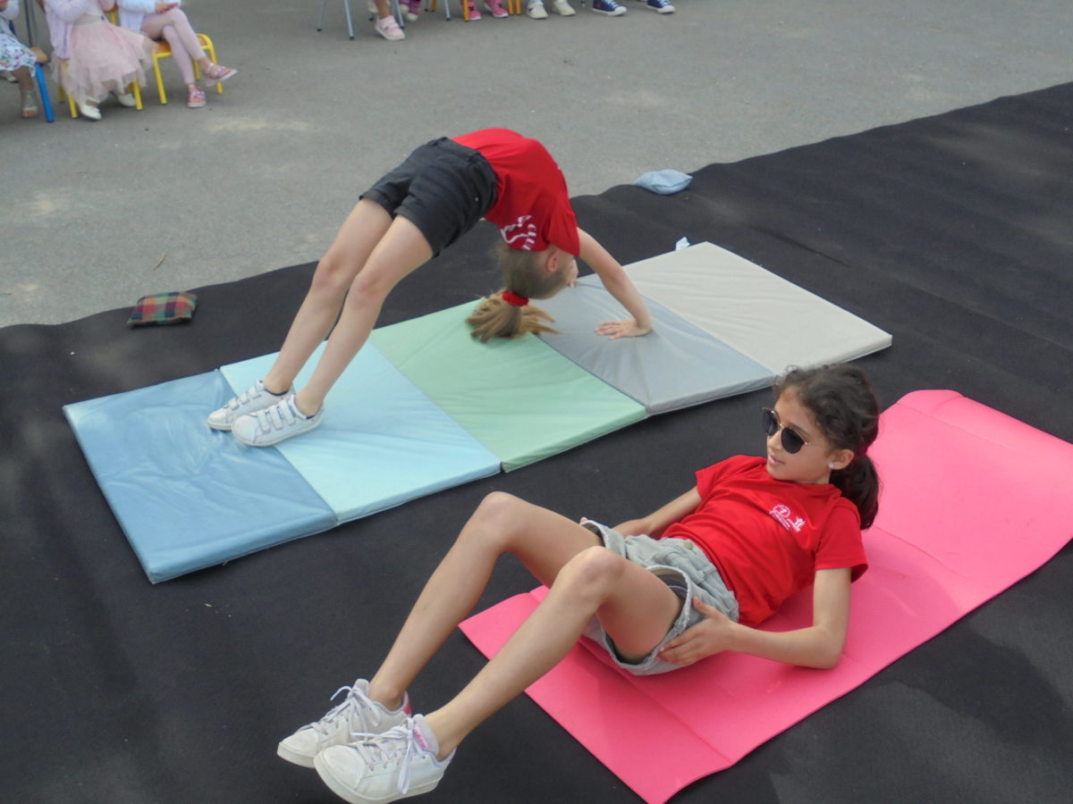 Un programme très varié nous a été offert : chants, danses, gymnastique, blagues, sketch, overboard, rollers, dribbles, yoga, dessin, zumba, corde à sauter …. Rien n’a été oublié et cette extrême variété a rendu le spectacle très vivant et rythmé !!