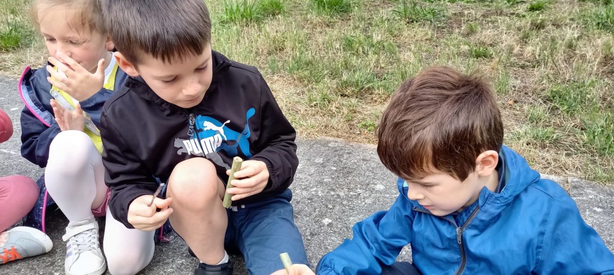 Nous avons fabriqué une flûte en sureau. Chloé, Louane et Shanna