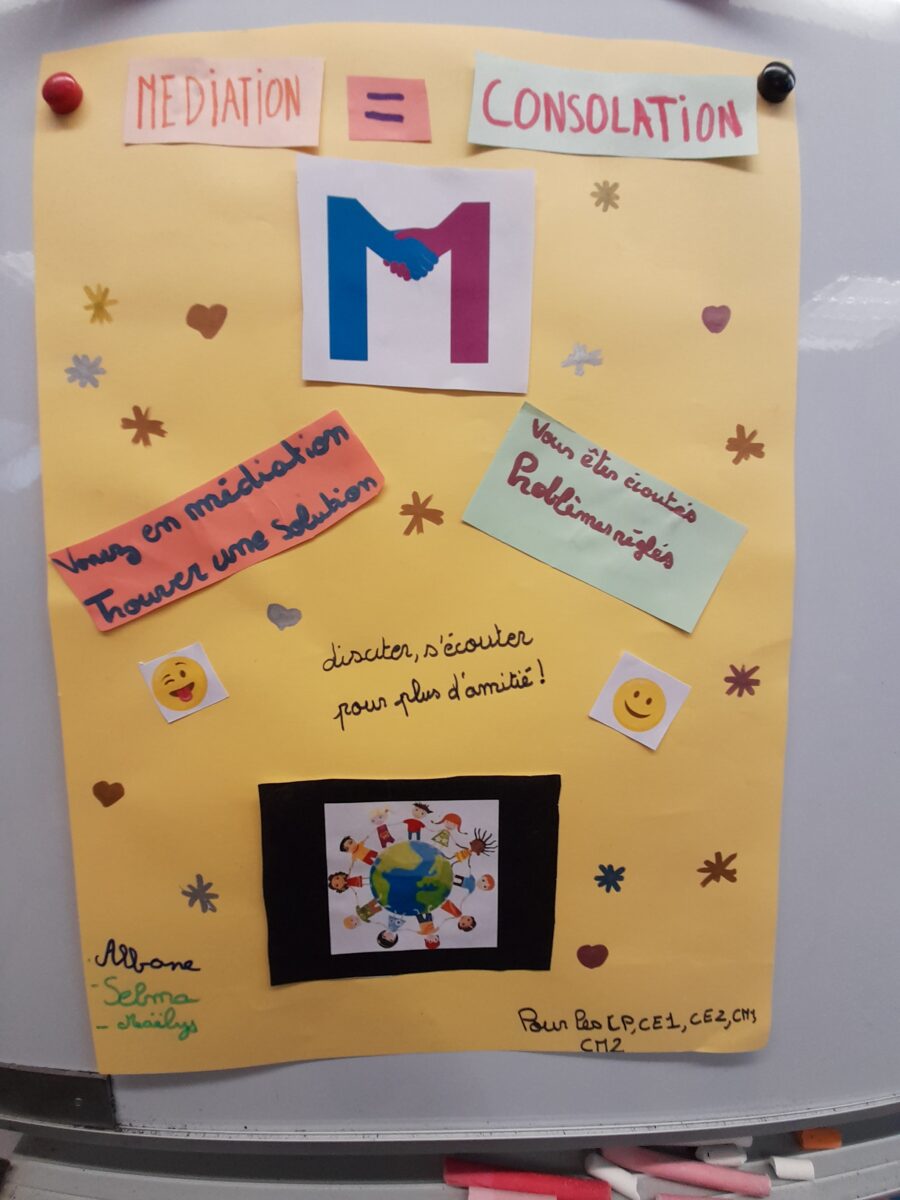 L’école et la mairie ont engagé un programme de médiation par les pairs en milieu scolaire et périscolaire. Il s’agit d’apprendre aux élèves à résoudre calmement les conflits.