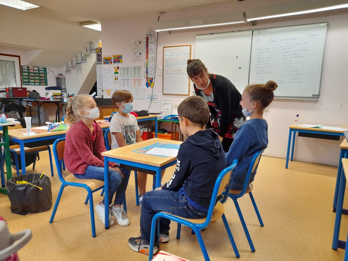 Douze élèves volontaires (4 CE2, 5 CM1 et 3 CM2) ont été recrutés par l’équipe éducative de l’établissement qui a été formée à cette démarche.
