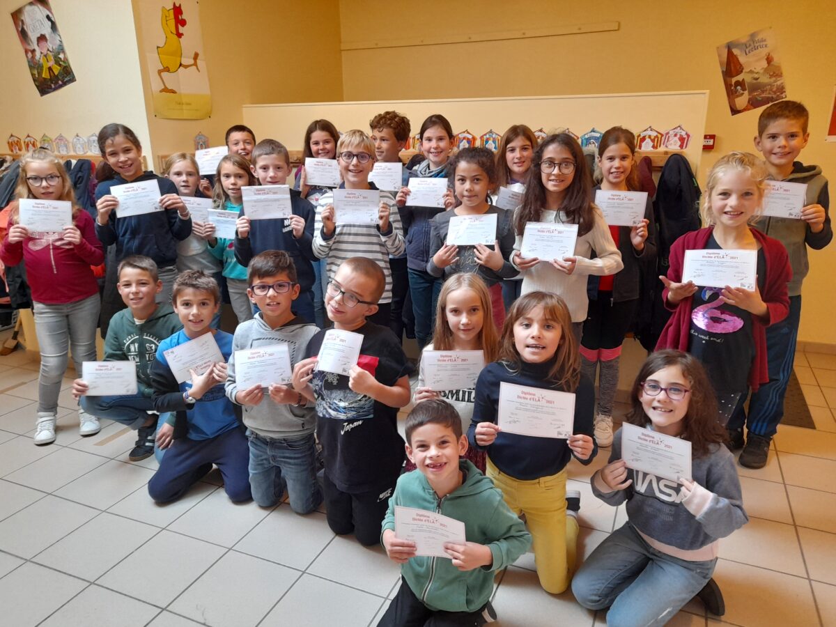 La dernière semaine d’école, avant les vacances d’automne, nous avons été solidaires d’ELA. ELA est une association qui aide les enfants, qui souffrent de leucodystrophie. Avant toute action, nous avons regardé une vidéo sur cette maladie. Nous avons été très émus des témoignages des enfants et de leurs parents. Lundi 18 octobre, nous avons fait la dictée d’ELA. Elle était assez compliquée, nous l’avons donc faite sous forme de dictée à trous. Sandrine nous a félicités car nous avons fait beaucoup d’efforts pour cette dictée. En classe, nous avons aussi débattu sur le texte de cette dictée. Nous avons obtenu un diplôme certifiant de notre soutien pour les enfants.