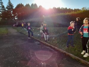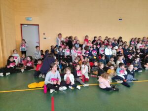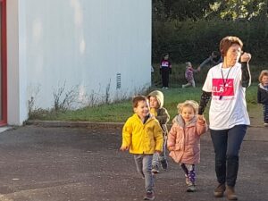 Puis, vendredi 22 octobre, avec tous les autres enfants de l’école, nous avons mis nos baskets et nous avons couru pour les enfants d’ELA, pour leur montrer qu’on pense fort à eux. Suite à cette course, nous nous sommes rassemblés dans la salle de sport et nous avons chanté. Pour cette action, nous avons eu un autre diplôme. Nous étions très fiers de nous.