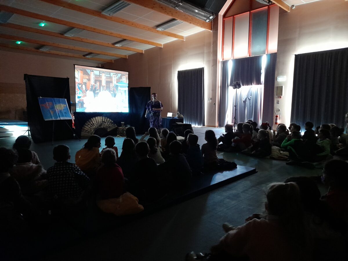 Mardi 11 janvier, les classes de CP, CE1-CE2 et CE2-CM1 sont allés voir un spectacle, intitulé : « Kim et Nina, tout un voyage pour se comprendre ». Kim et Nina sont deux enfants, de culture et de nationalité différentes, qui voyagent autour du monde. Les enfants ont beaucoup aimé.