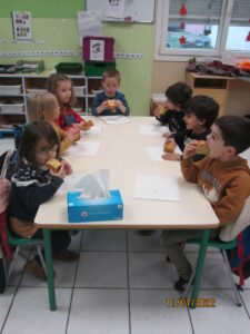La galette des rois Par Nathalie BernardLe 12 janvier 2022Dans Maternelles 2021-2022 Nous avons fêté les rois et nous avons mangé la galette !