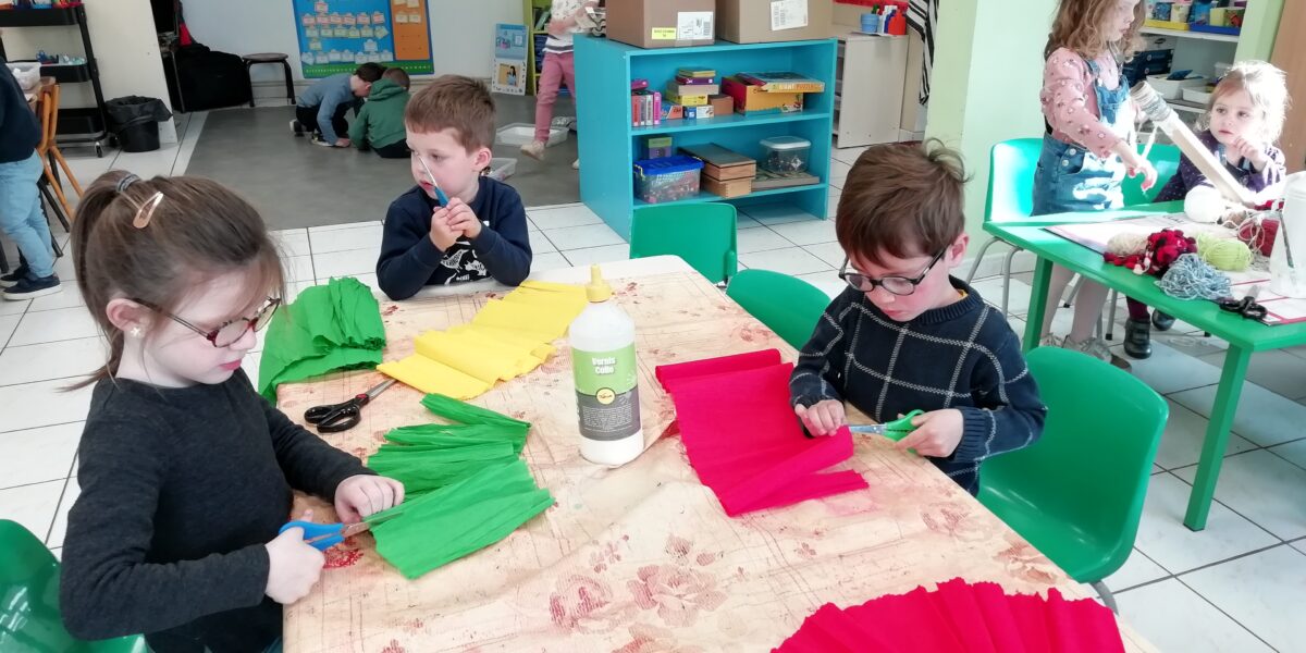 Mardi 29 mars, nous avons fêté la mi-carême ! Au programme de la journée : ateliers avec les deux classes.