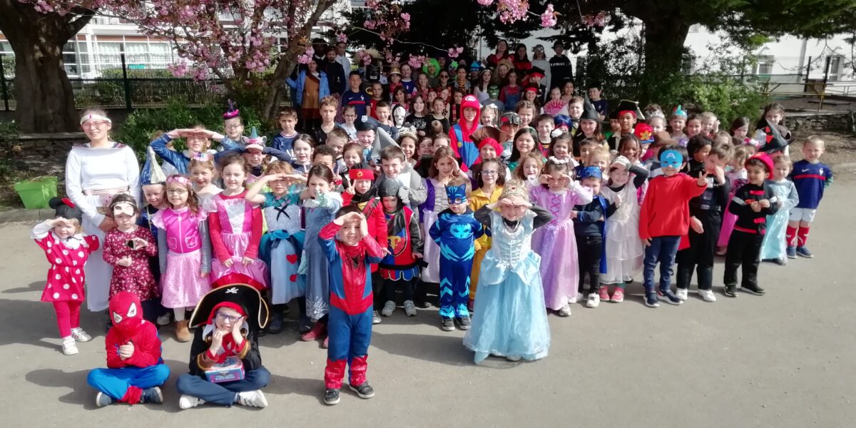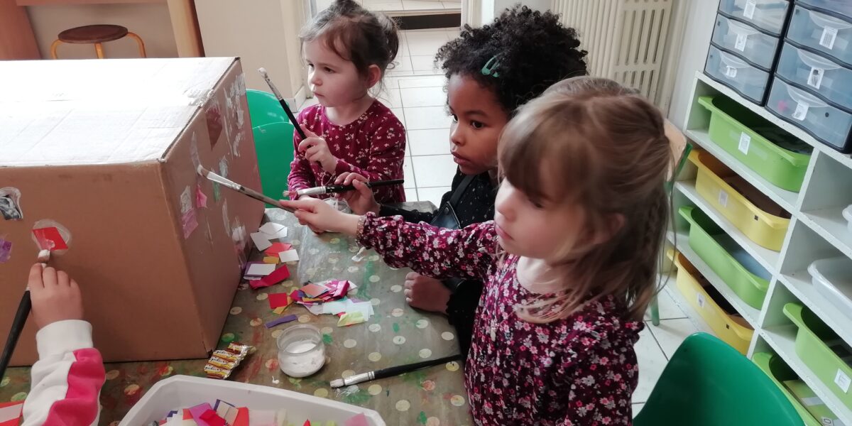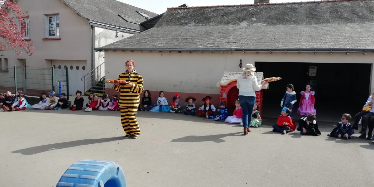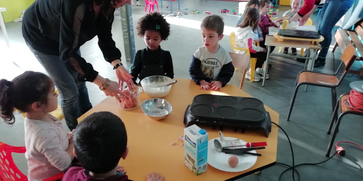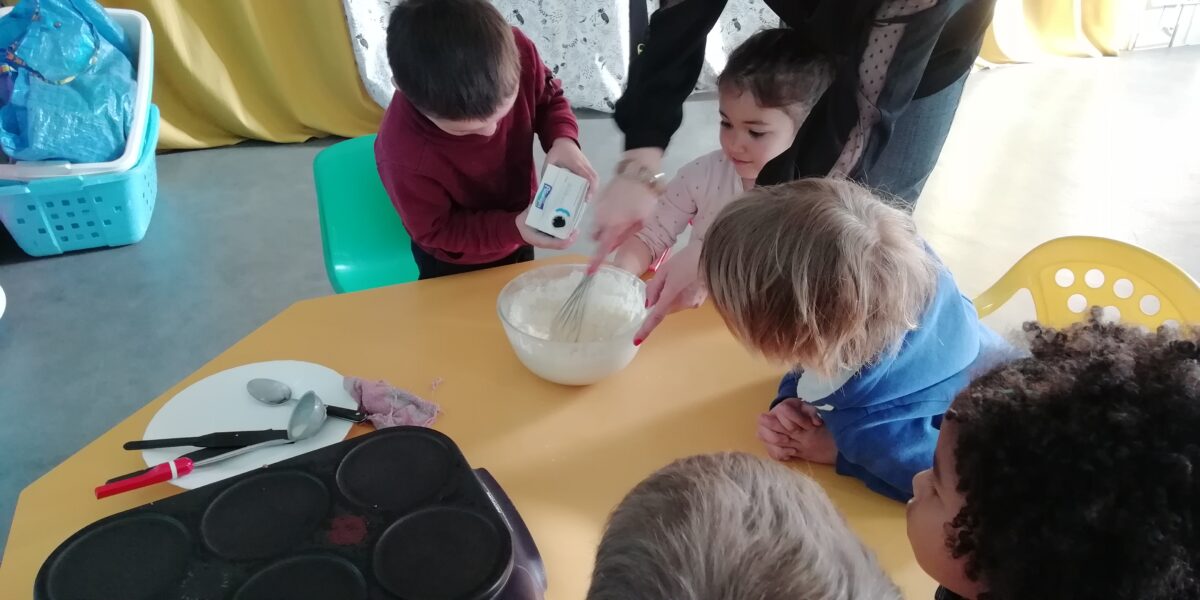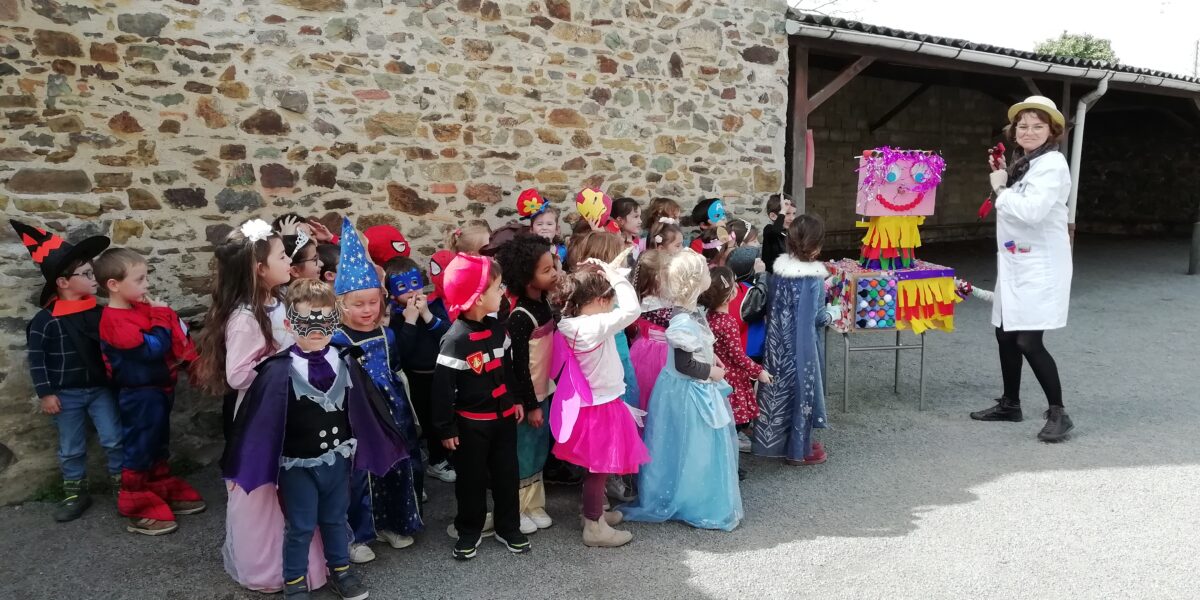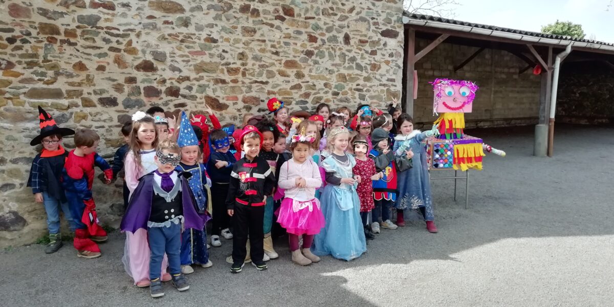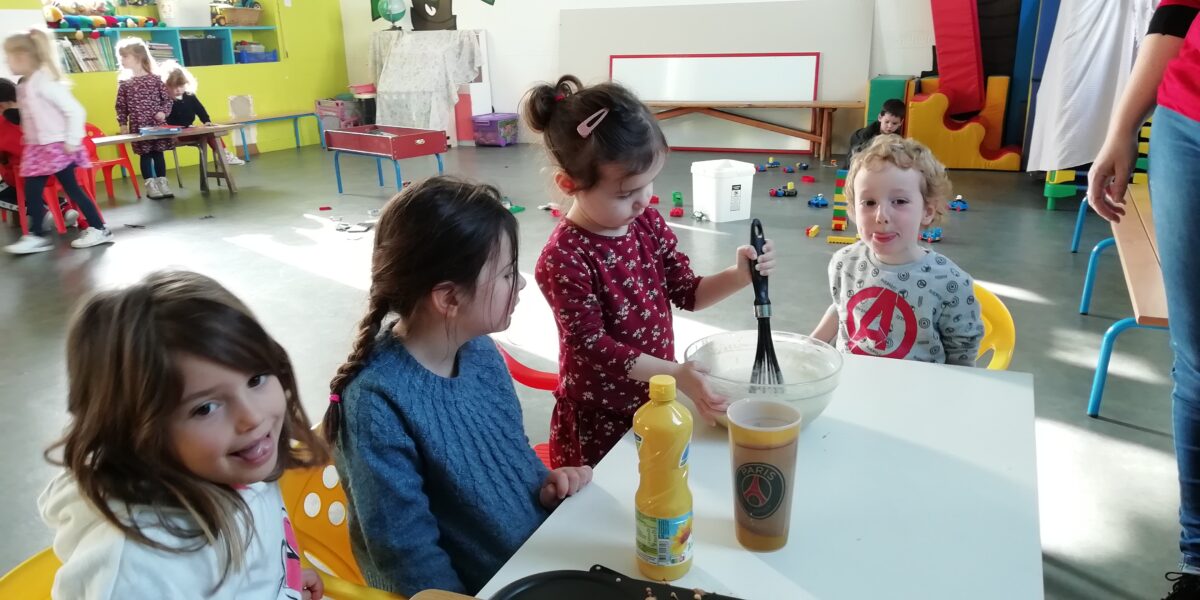 Le matin, nous avons fabriqué un bonhomme carnaval tous ensemble et confectionné des crêpes. L’après-midi, nous avons enfilé nos déguisements puis retrouvé les grands pour partager le goûter !