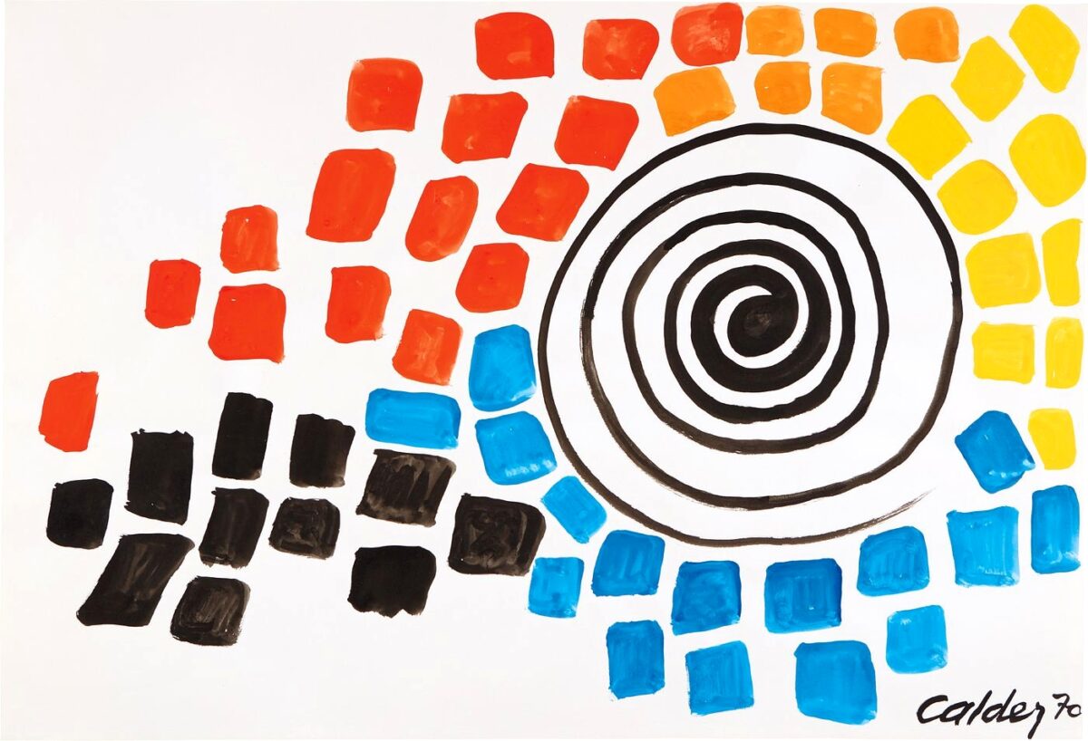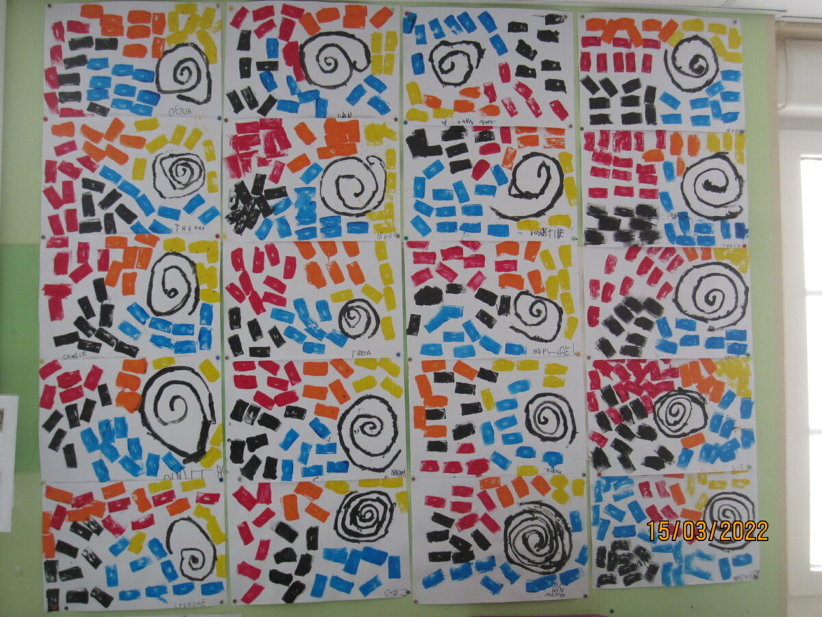Nous avons observé le tableau de Calder puis nous avons nous aussi fait une spirale au pinceau !