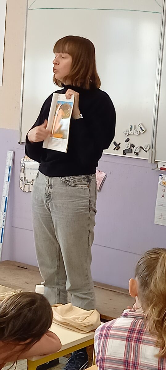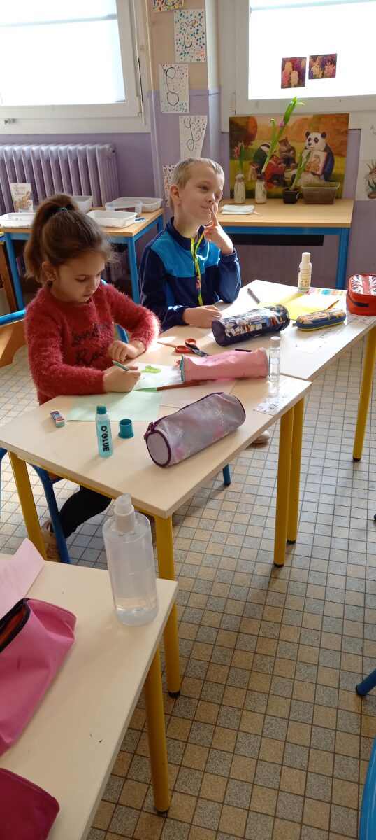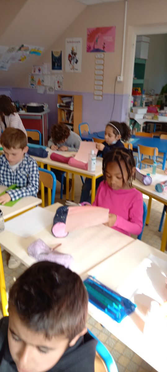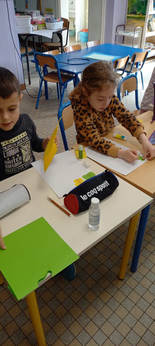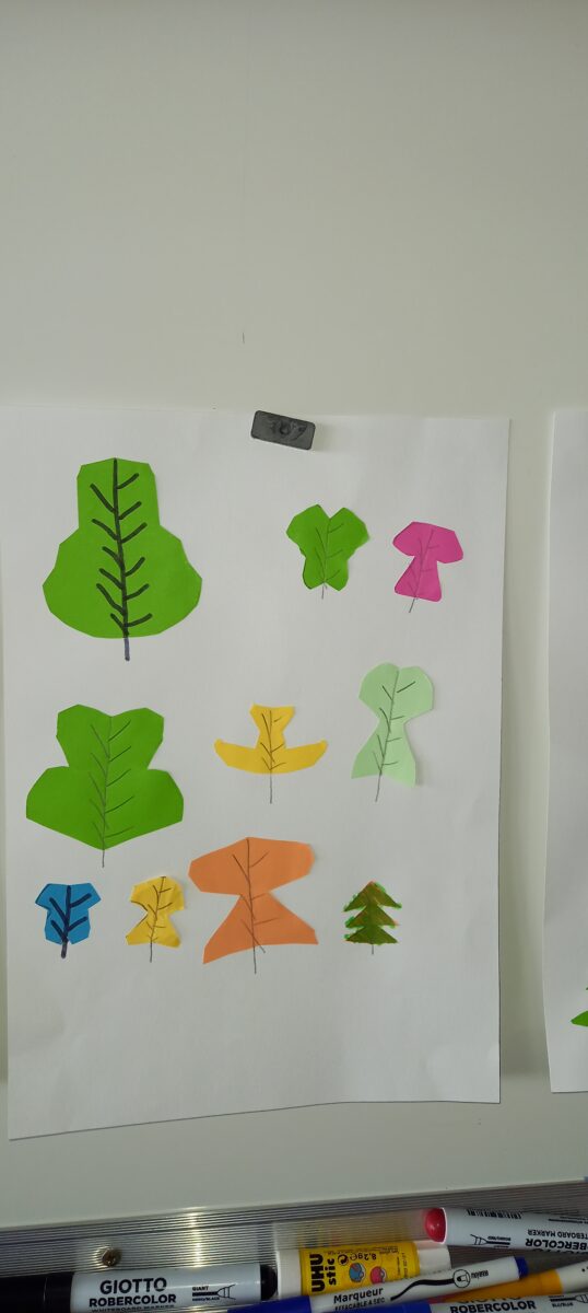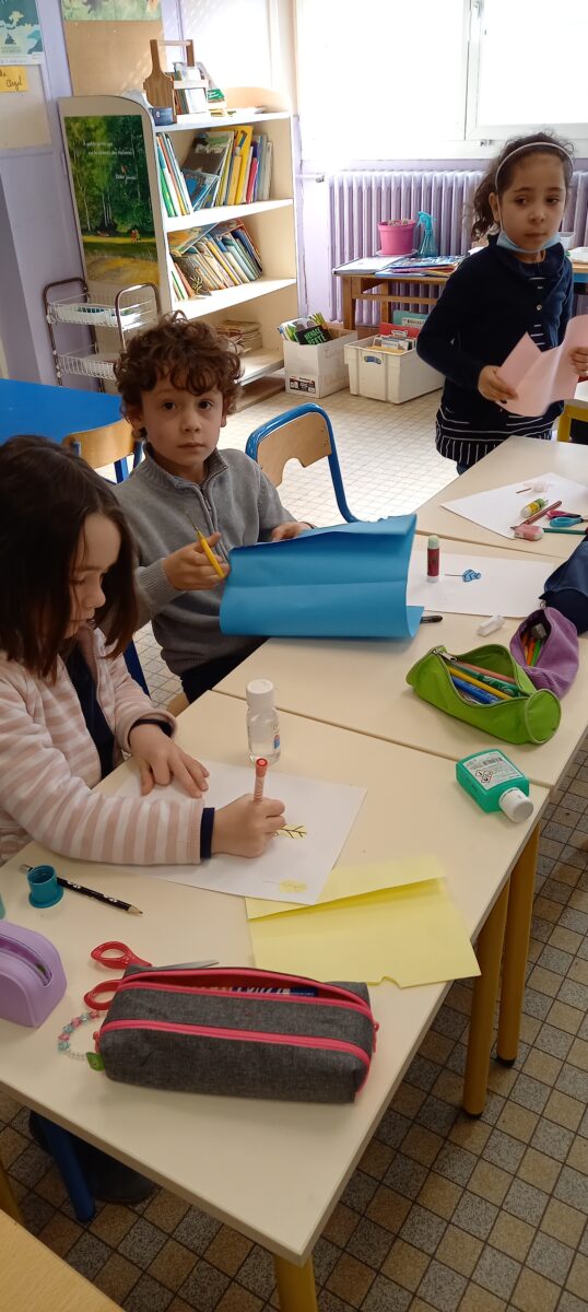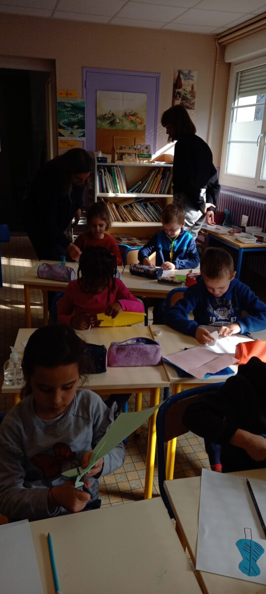 Jeudi 24 mars, nous avons eu la chance d’accueillir une illustratrice nantaise Marta Orzel. Elle nous a parlé de son métier et de ses réalisations et techniques. Elle nous a ensuite montré des modèles d’arbres. Nous en avons réalisé en découpant dans du papier de couleur. Nous lui avons également présenté notre œuvre collective » Le monde des animaux imaginaires ». Celle-ci est exposée au Salon du livre de Sucé sur Erdre ce week-end.