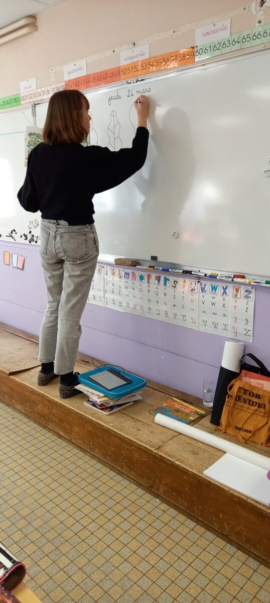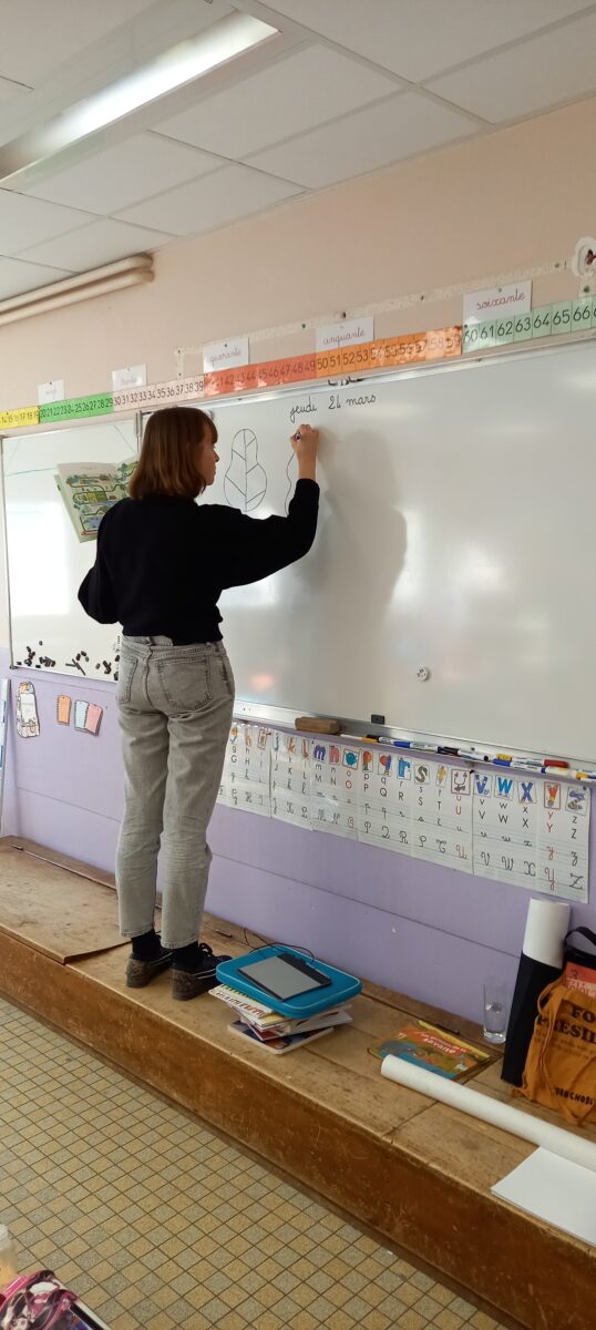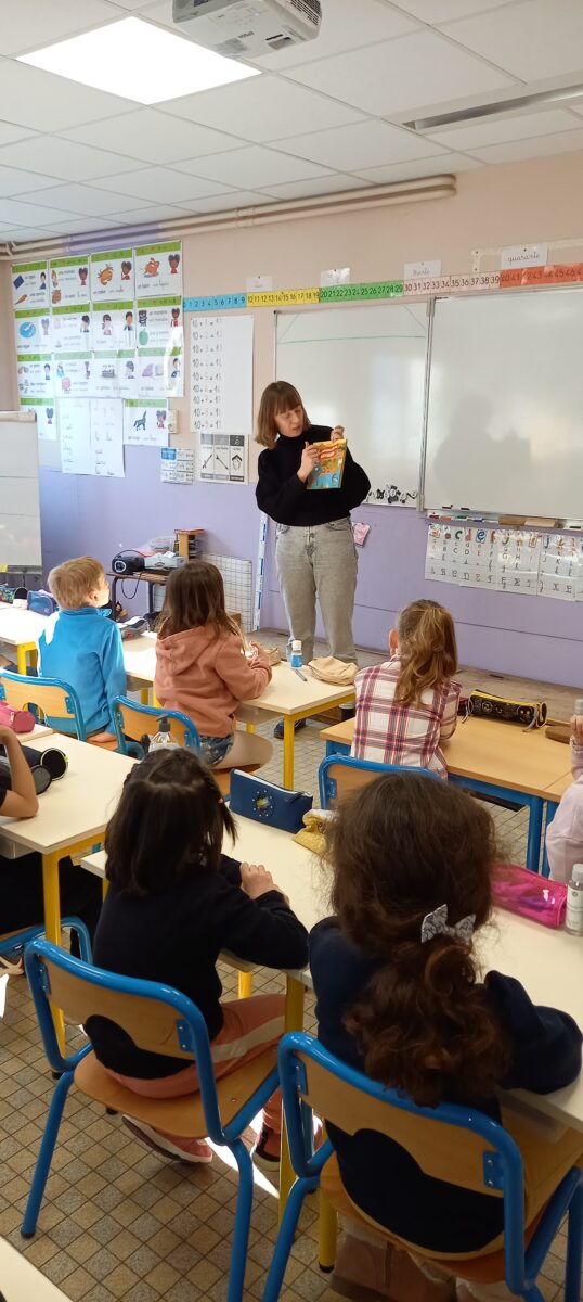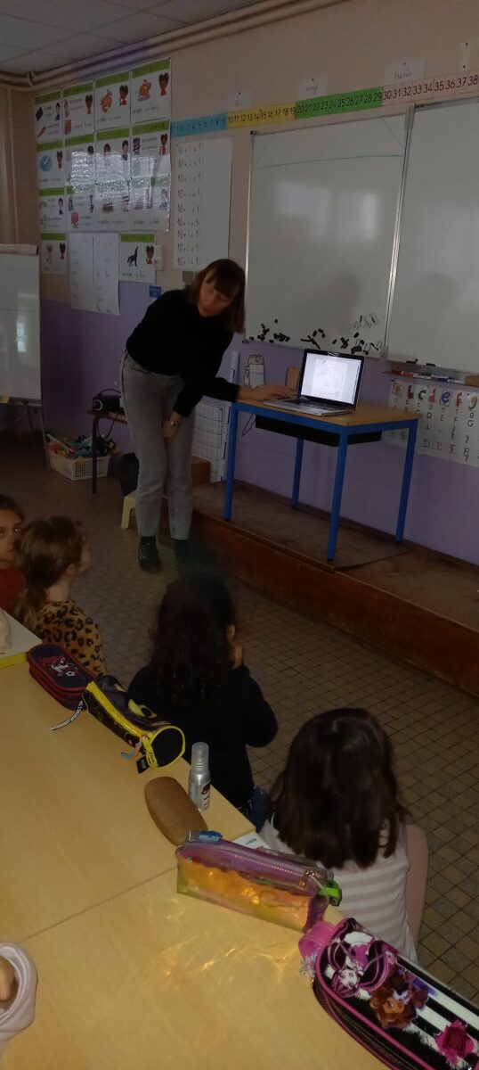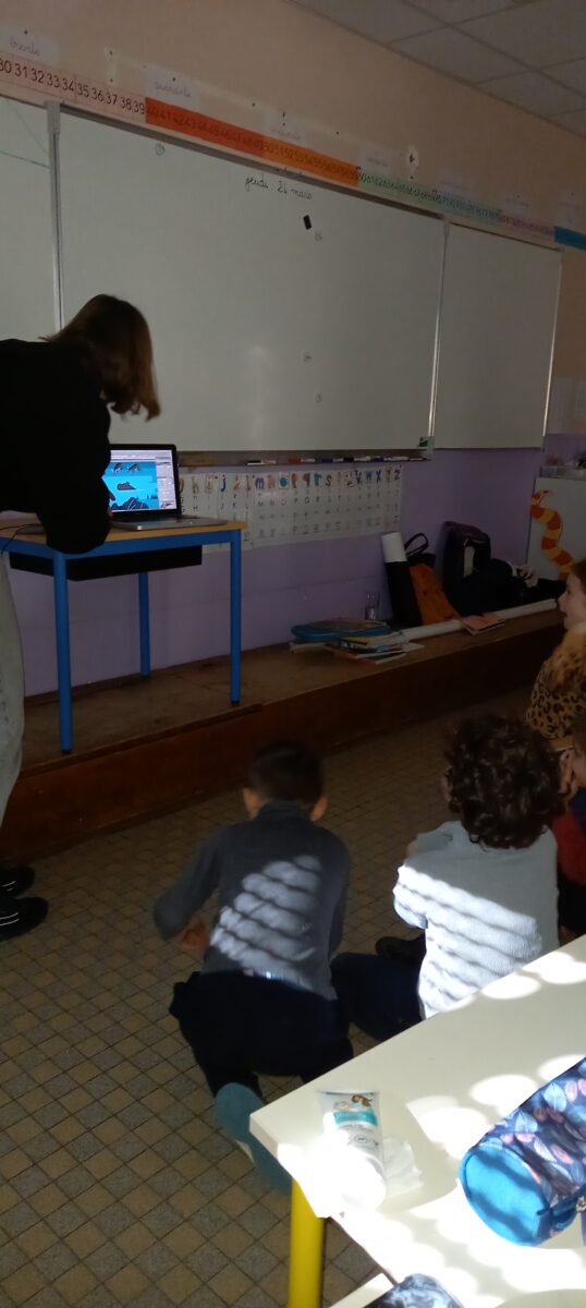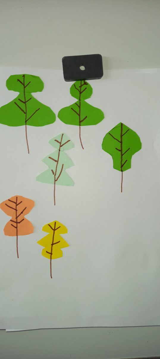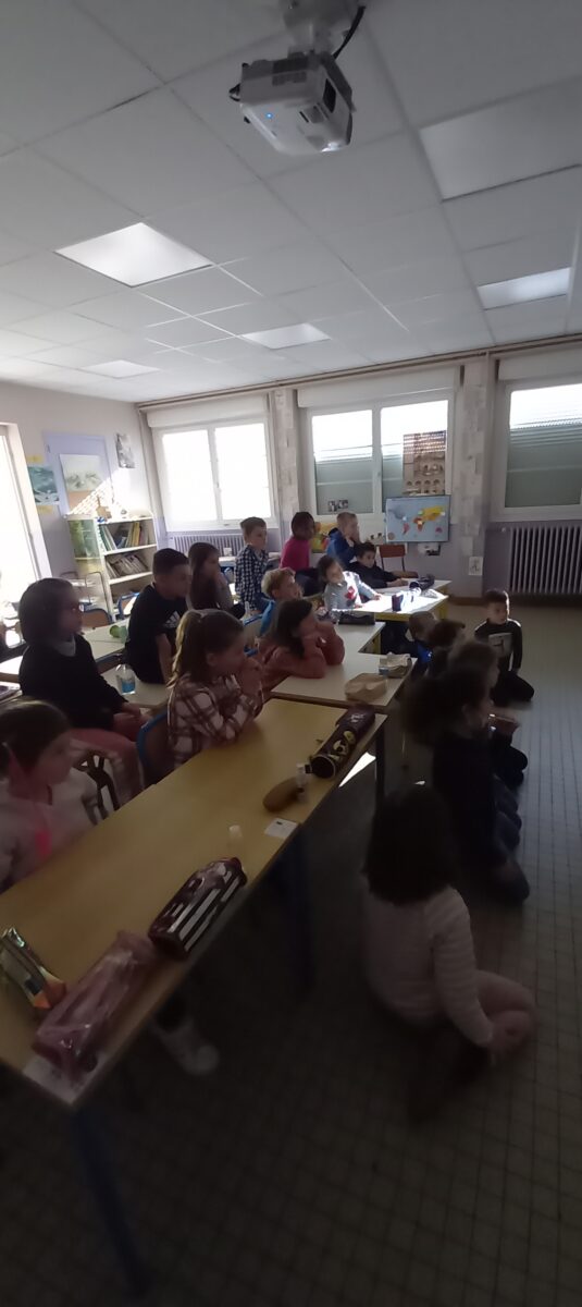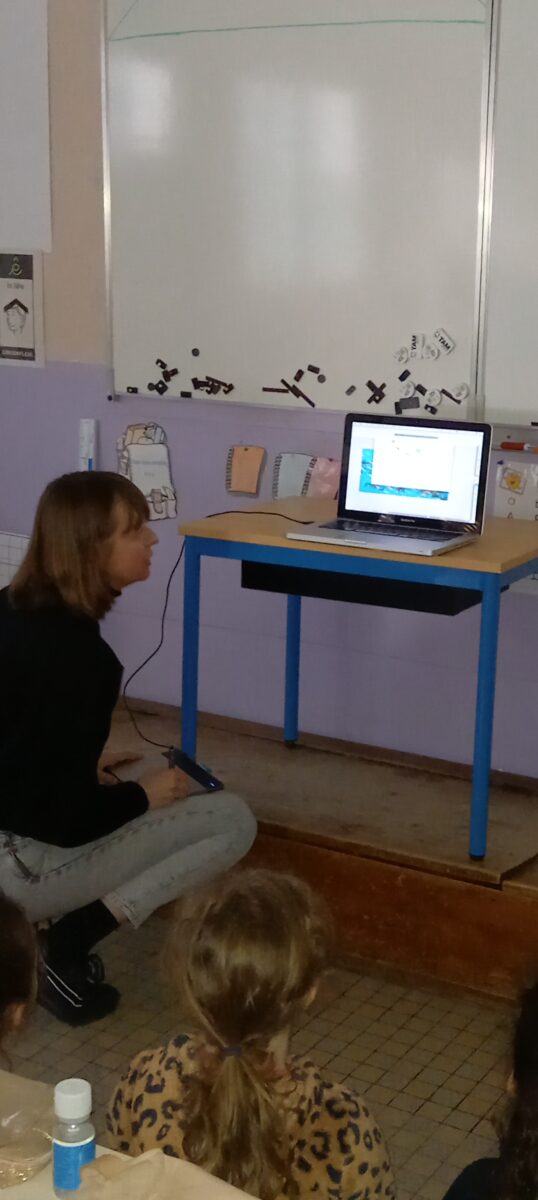 Jeudi 24 mars, nous avons eu la chance d’accueillir une illustratrice nantaise Marta Orzel. Elle nous a parlé de son métier et de ses réalisations et techniques. Elle nous a ensuite montré des modèles d’arbres. Nous en avons réalisé en découpant dans du papier de couleur. Nous lui avons également présenté notre œuvre collective » Le monde des animaux imaginaires ». Celle-ci est exposée au Salon du livre de Sucé sur Erdre ce week-end.
