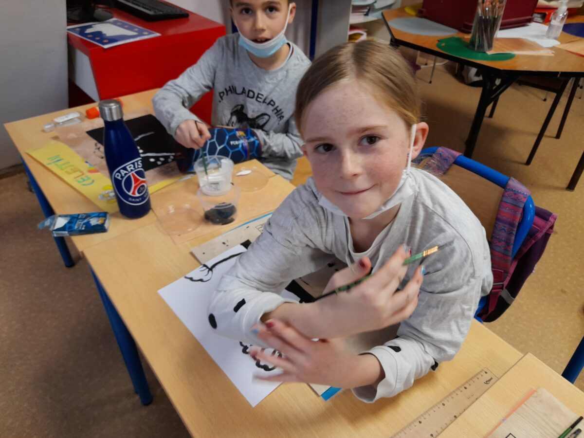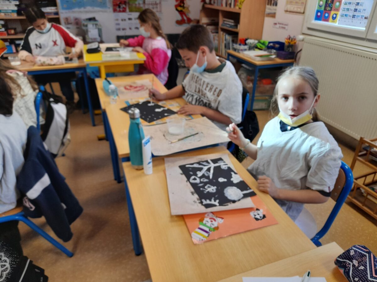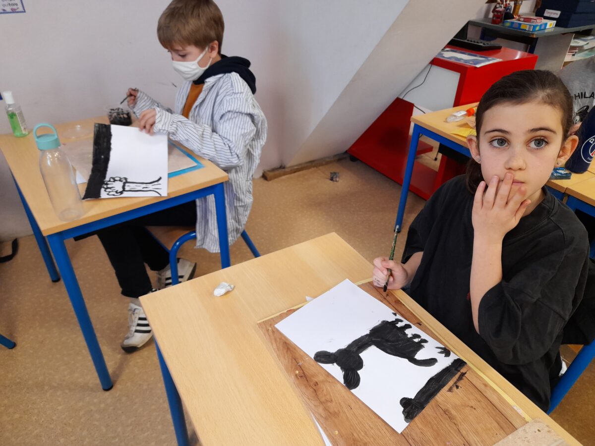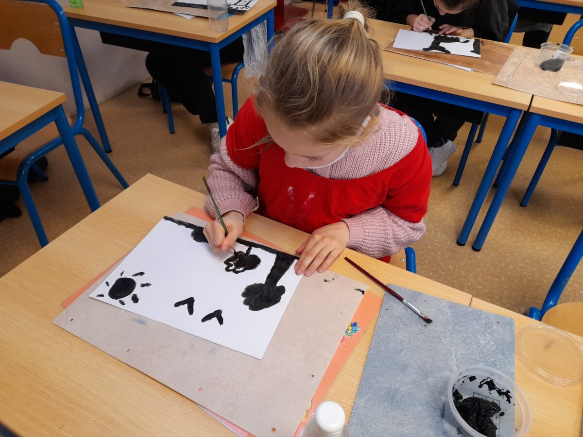 Dans notre classe, nous nous sommes intéressé aux techniques utilisées par Marta Orzel. C’est ainsi, qu’après le travail sur Mathis, nous avons fait des productions en noir et blanc.