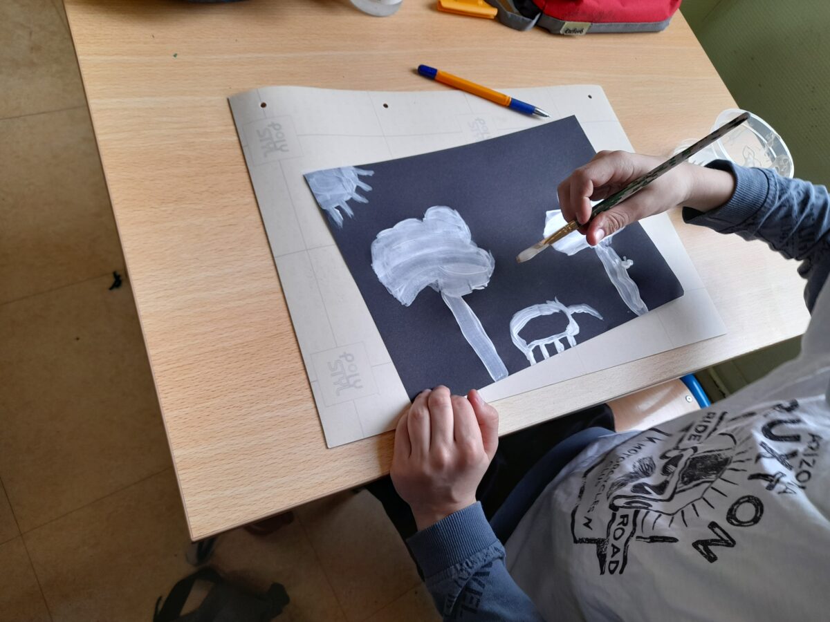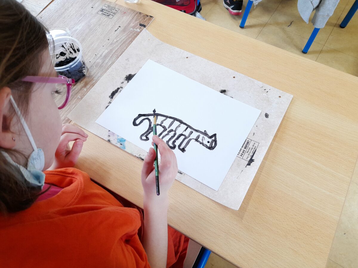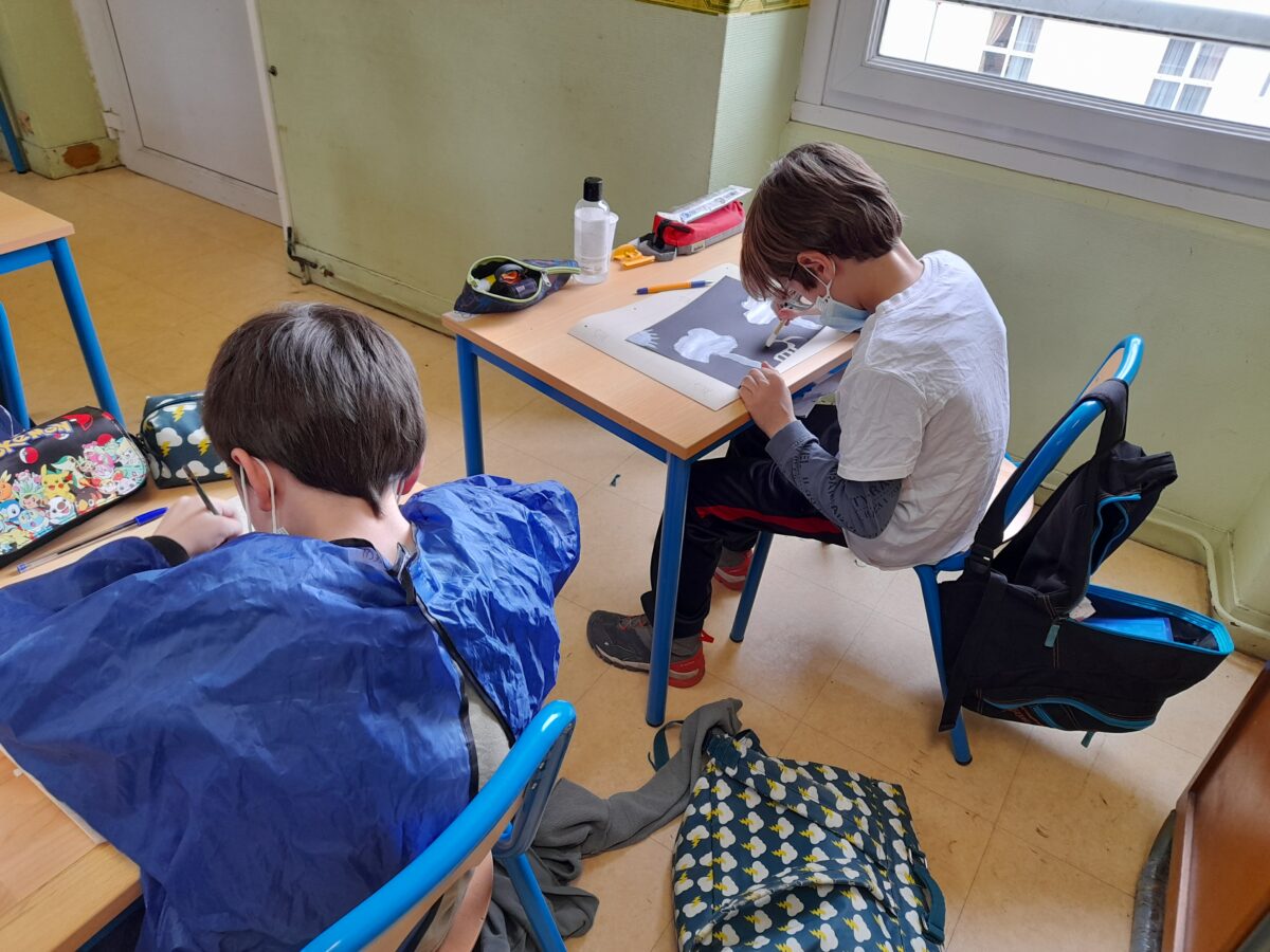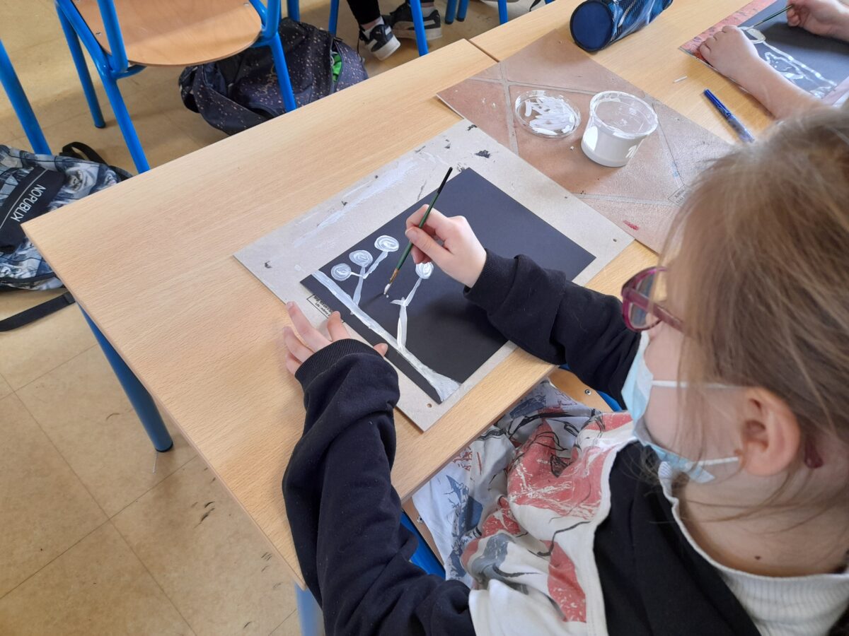 Dans notre classe, nous nous sommes intéressé aux techniques utilisées par Marta Orzel. C’est ainsi, qu’après le travail sur Mathis, nous avons fait des productions en noir et blanc.