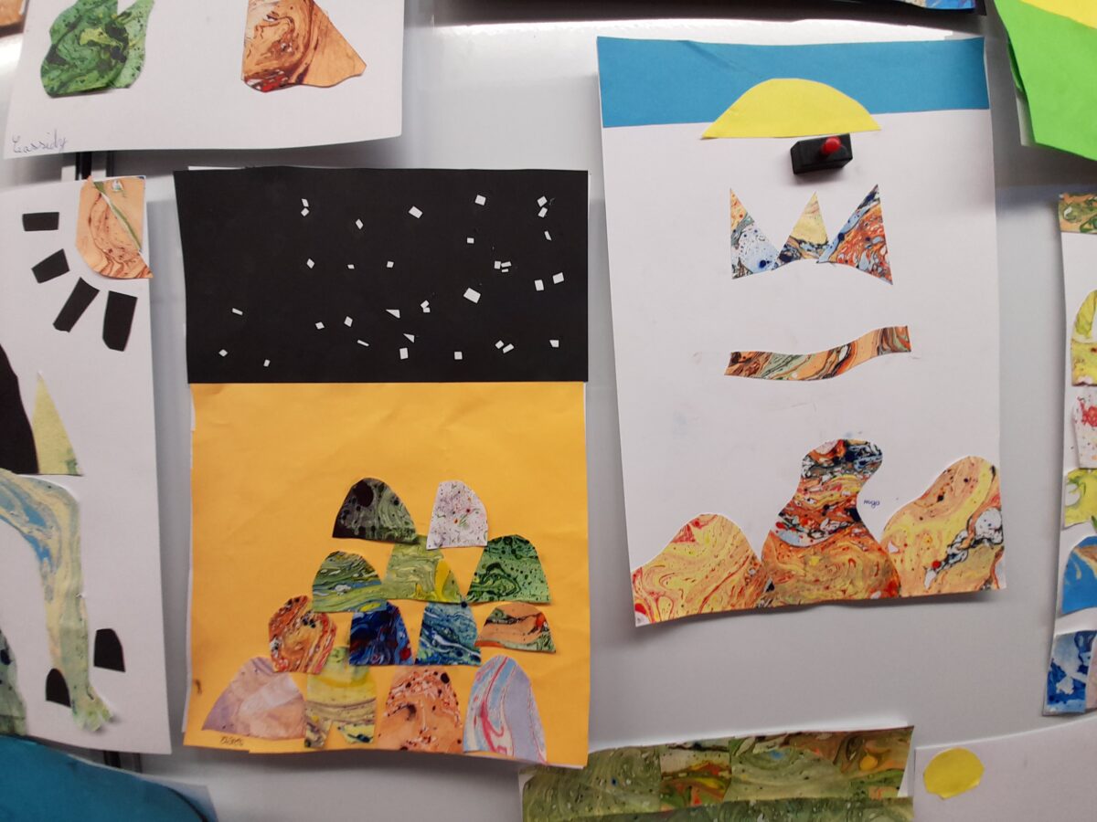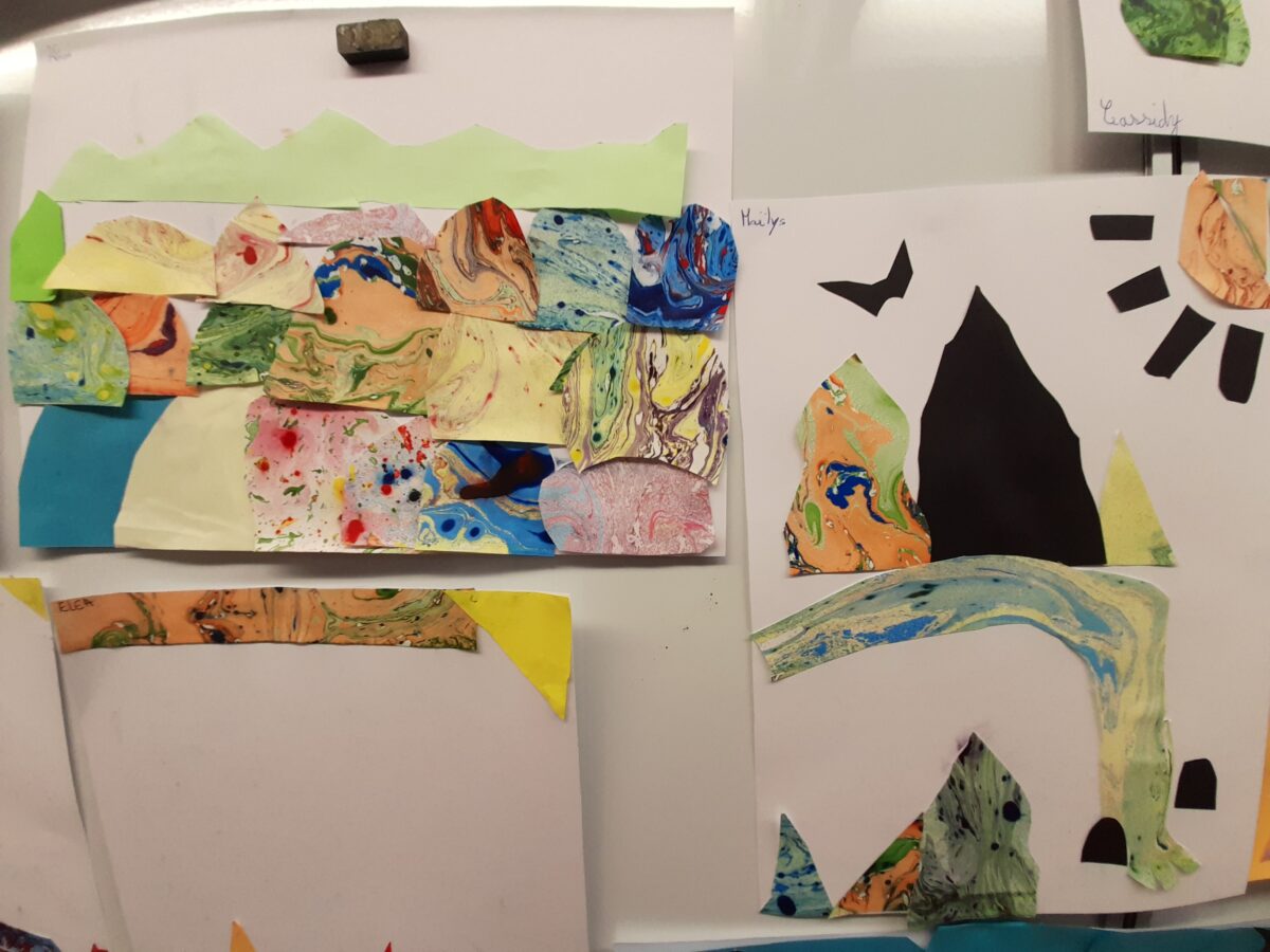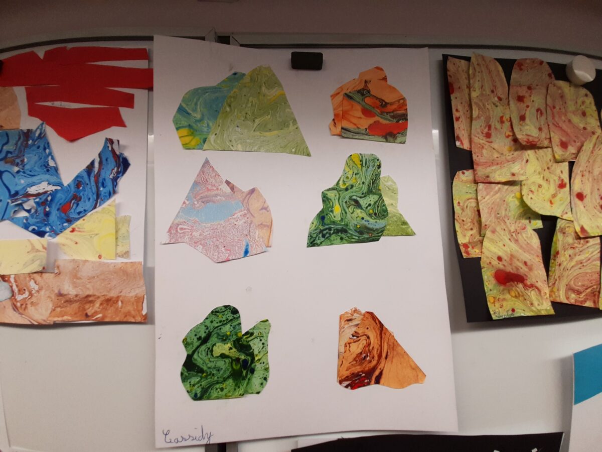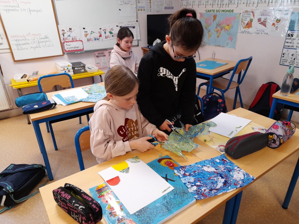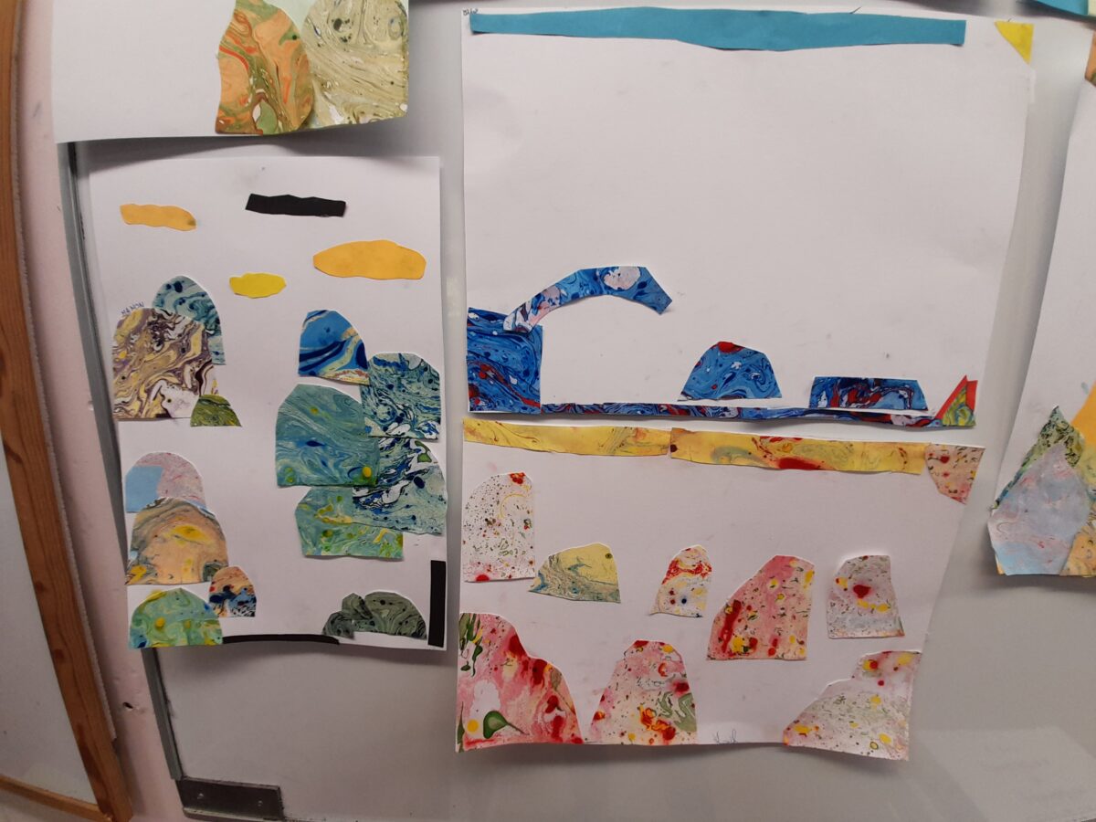 Jeudi 24 mars, Marta Orzel est venue dans notre classe. Elle s’est présentée, puis nous avons produit du papier marbré en utilisant la même technique qu’elle. Le lendemain, nous avons confectionné des paysages en utilisant ce papier marbré. C’était génial, on aurait dit de la magie. Voici une petite démonstration de Marta, puis un diaporama de nos productions et de cette belle rencontre.