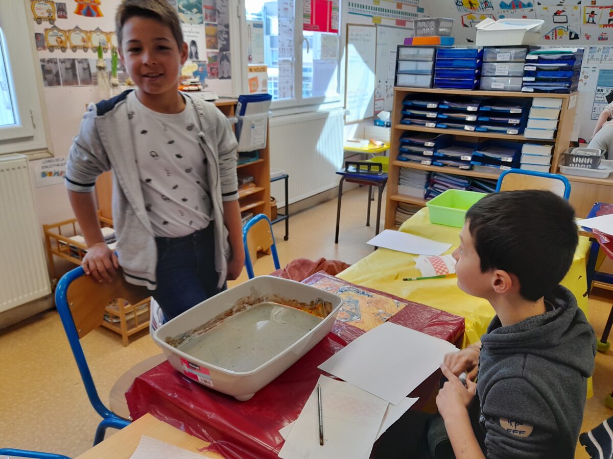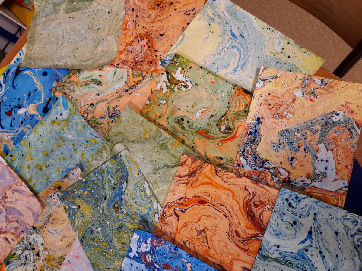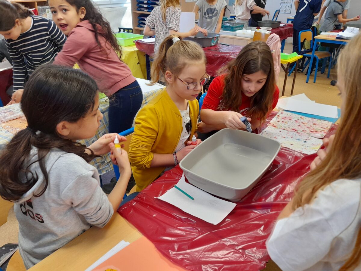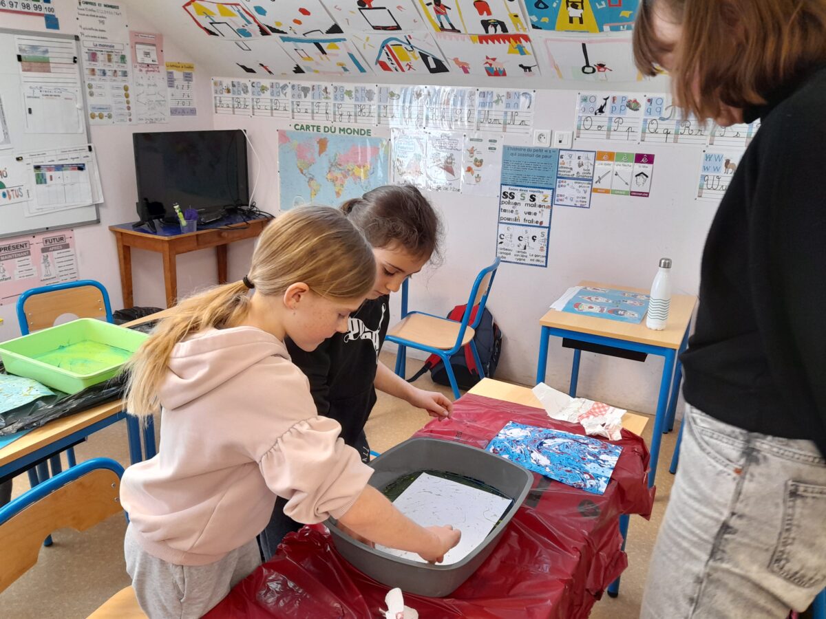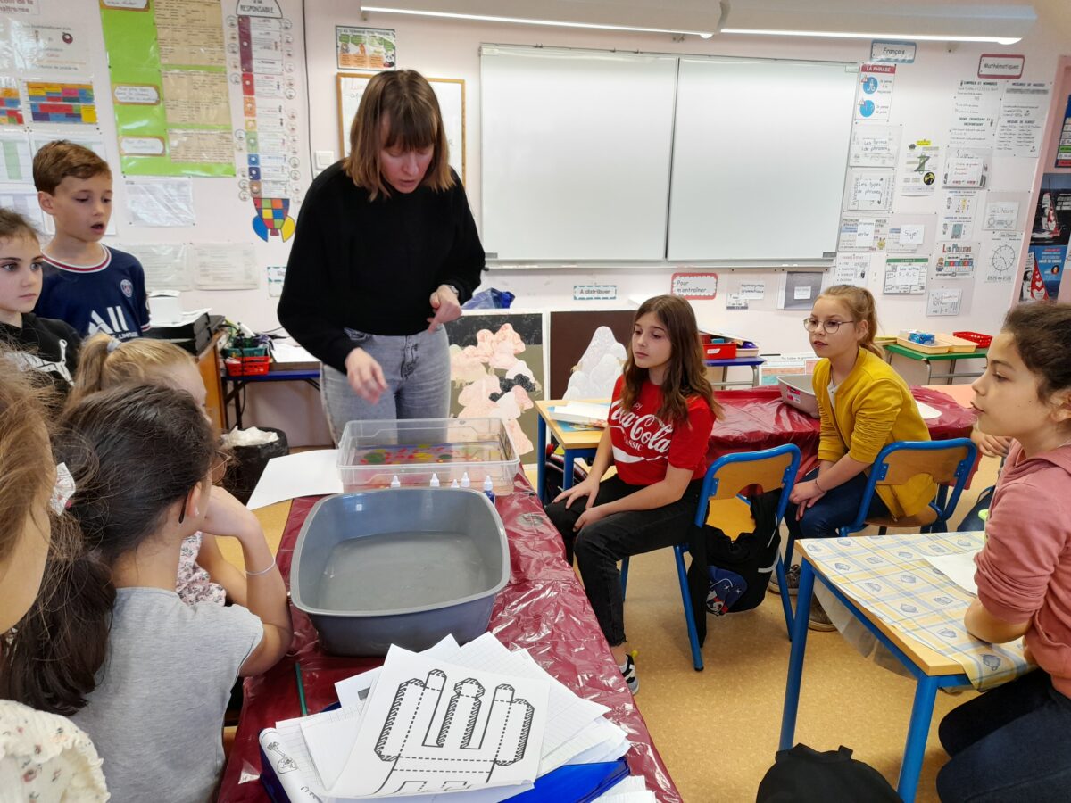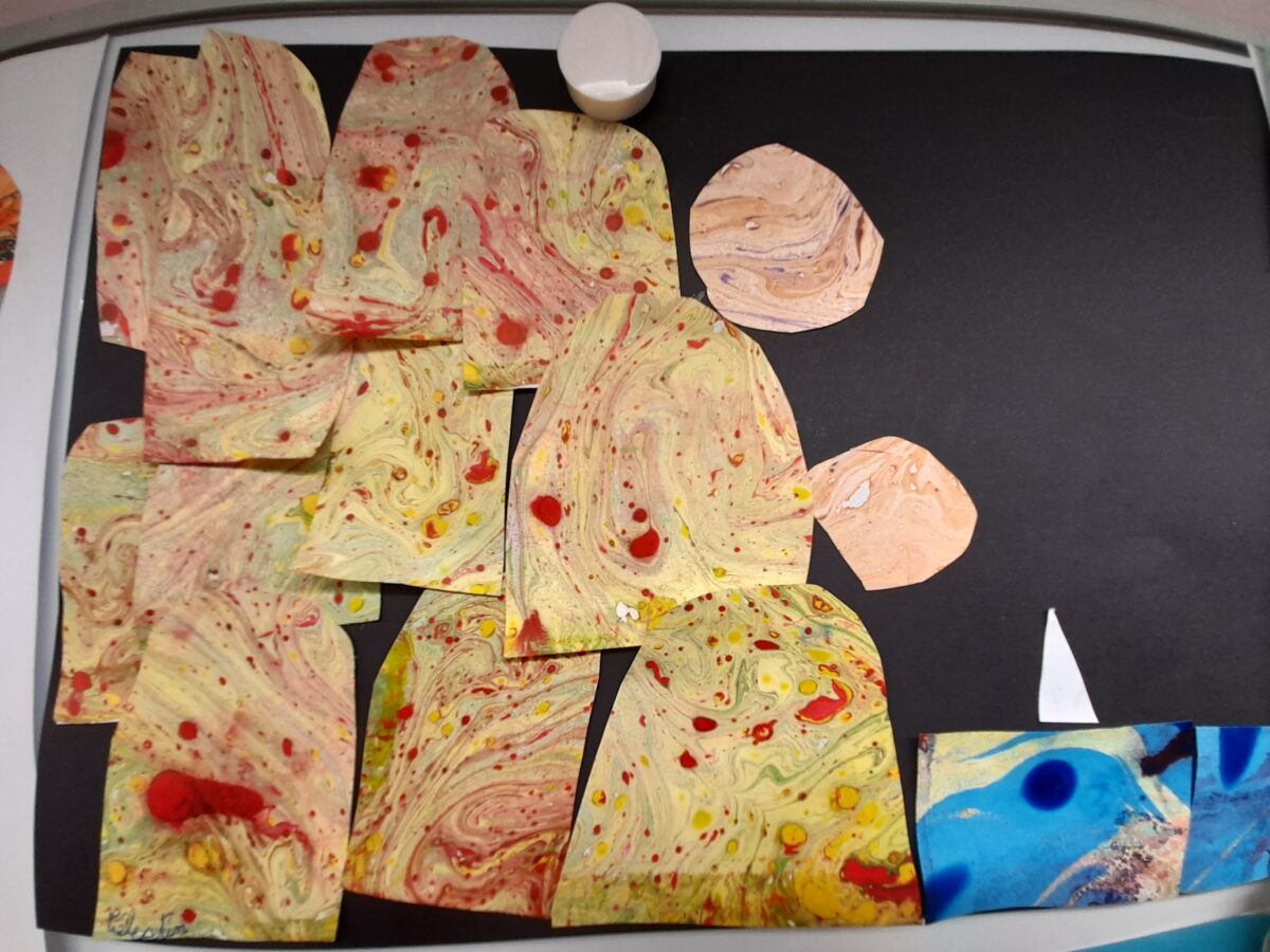 Jeudi 24 mars, Marta Orzel est venue dans notre classe. Elle s’est présentée, puis nous avons produit du papier marbré en utilisant la même technique qu’elle. Le lendemain, nous avons confectionné des paysages en utilisant ce papier marbré. C’était génial, on aurait dit de la magie. Voici une petite démonstration de Marta, puis un diaporama de nos productions et de cette belle rencontre.