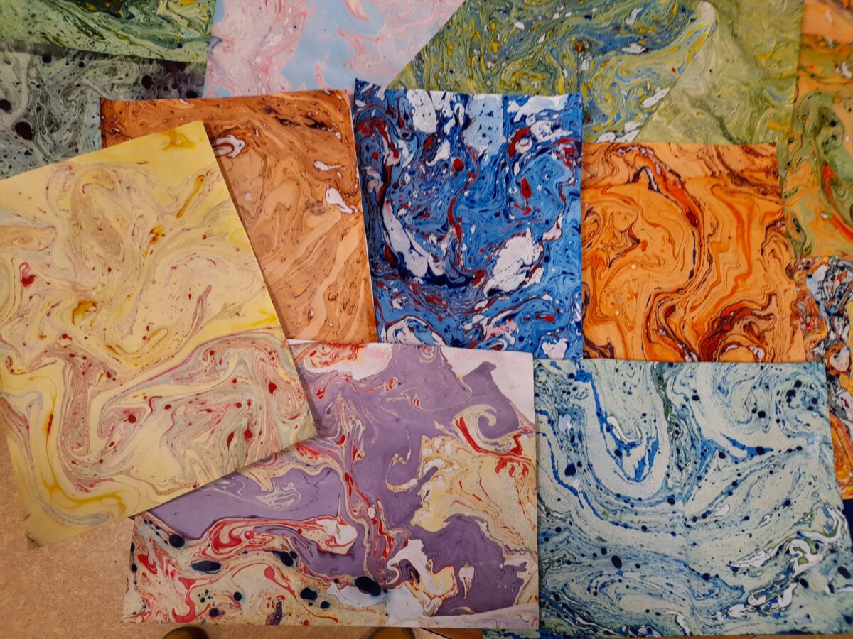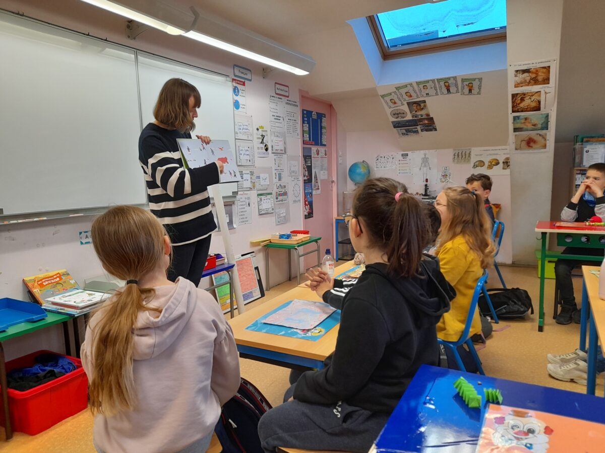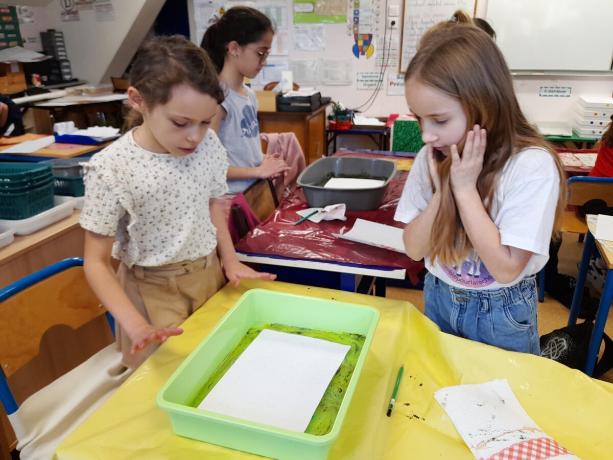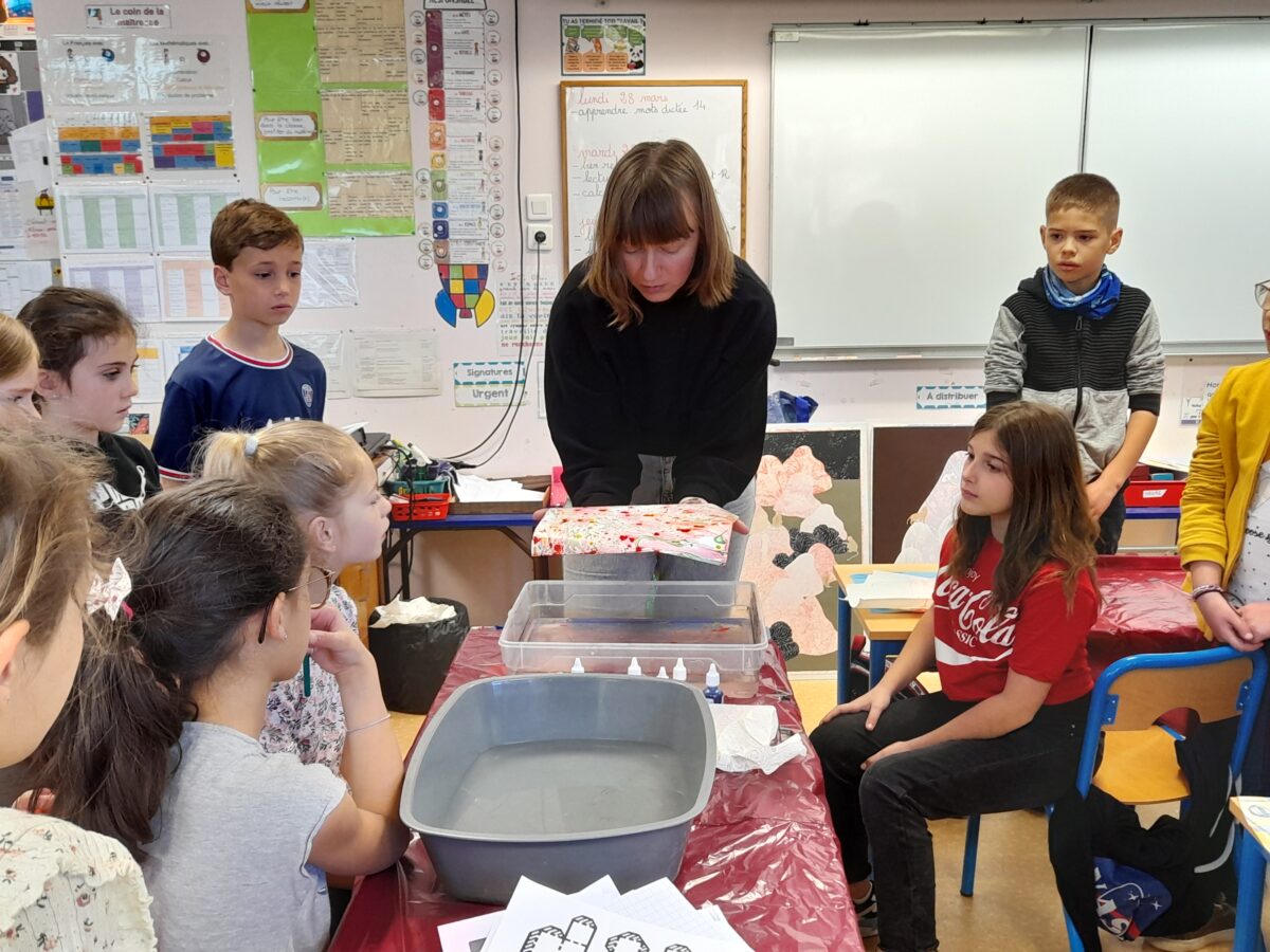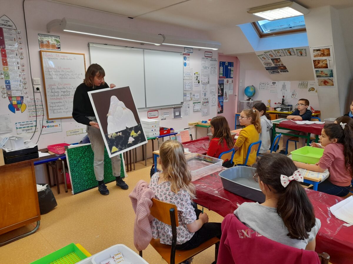 Jeudi 24 mars, Marta Orzel est venue dans notre classe. Elle s’est présentée, puis nous avons produit du papier marbré en utilisant la même technique qu’elle. Le lendemain, nous avons confectionné des paysages en utilisant ce papier marbré. C’était génial, on aurait dit de la magie. Voici une petite démonstration de Marta, puis un diaporama de nos productions et de cette belle rencontre.