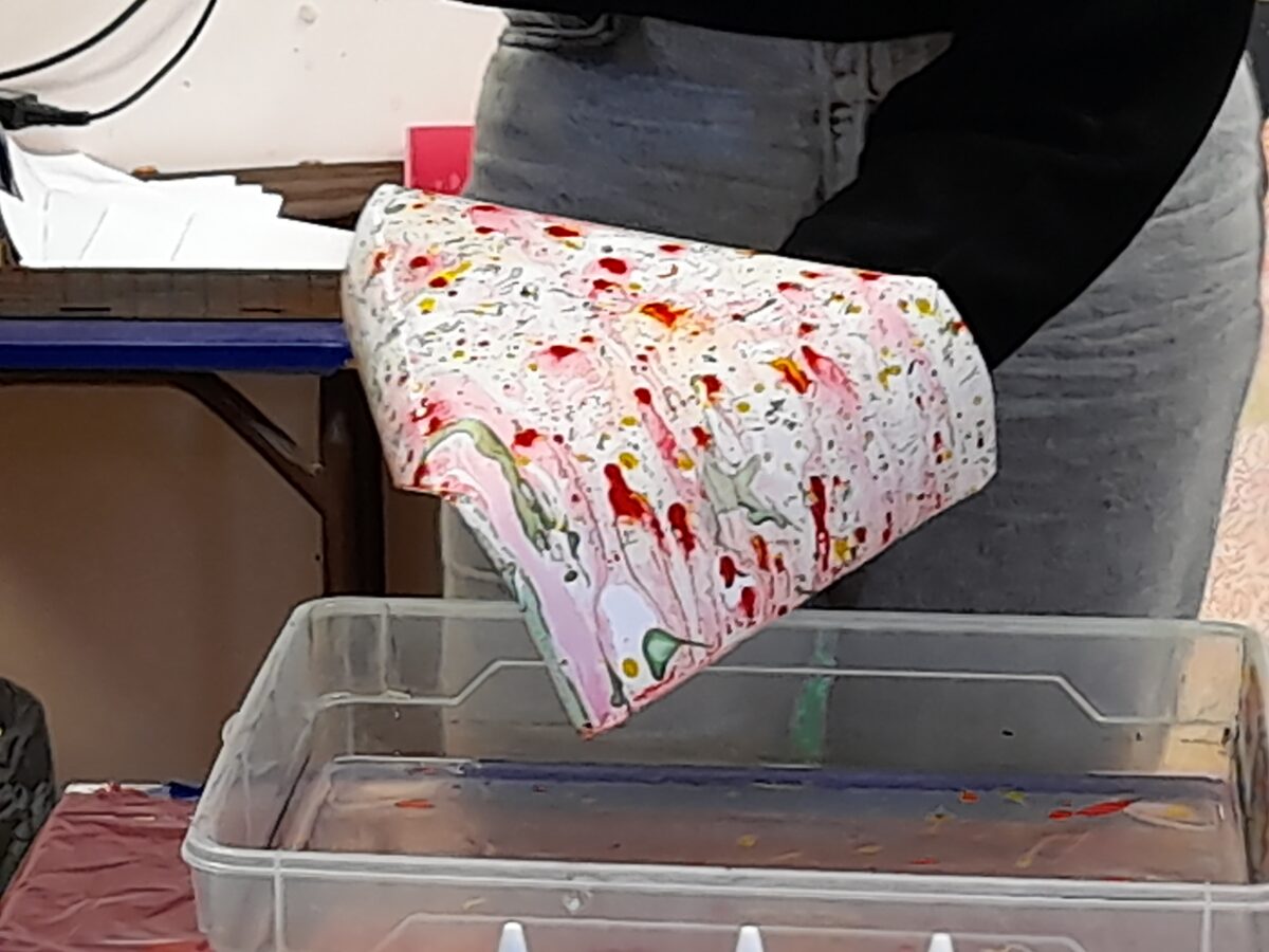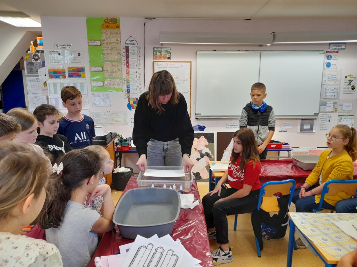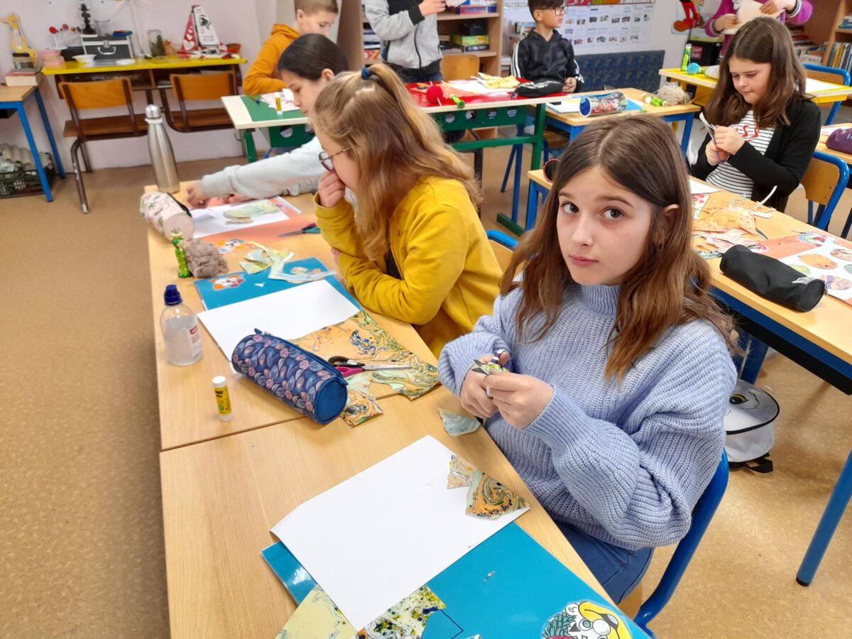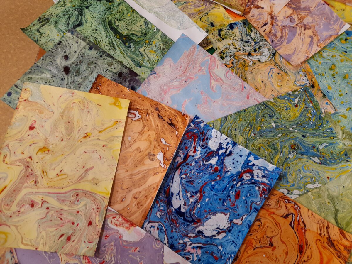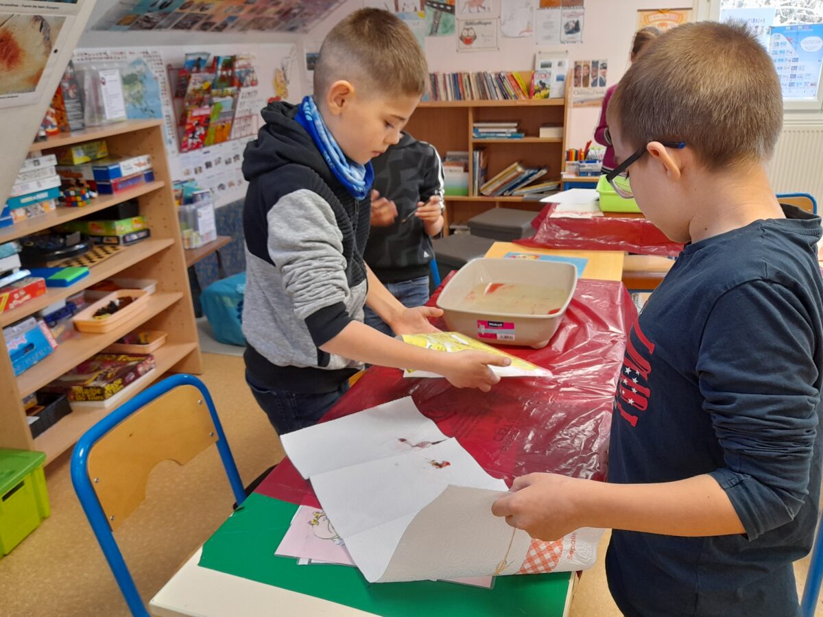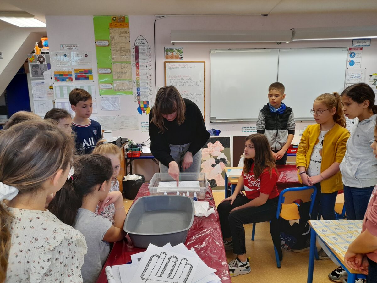 Jeudi 24 mars, Marta Orzel est venue dans notre classe. Elle s’est présentée, puis nous avons produit du papier marbré en utilisant la même technique qu’elle. Le lendemain, nous avons confectionné des paysages en utilisant ce papier marbré. C’était génial, on aurait dit de la magie. Voici une petite démonstration de Marta, puis un diaporama de nos productions et de cette belle rencontre.