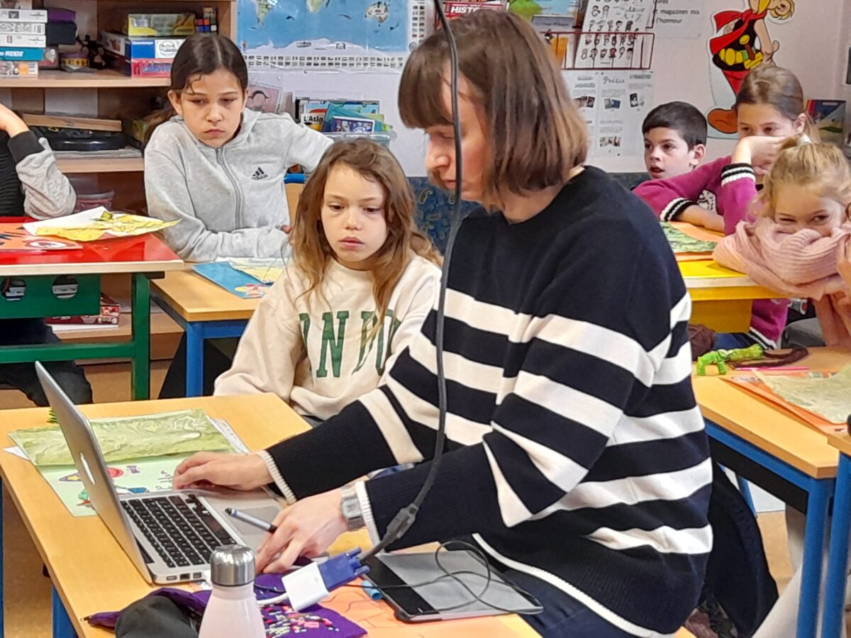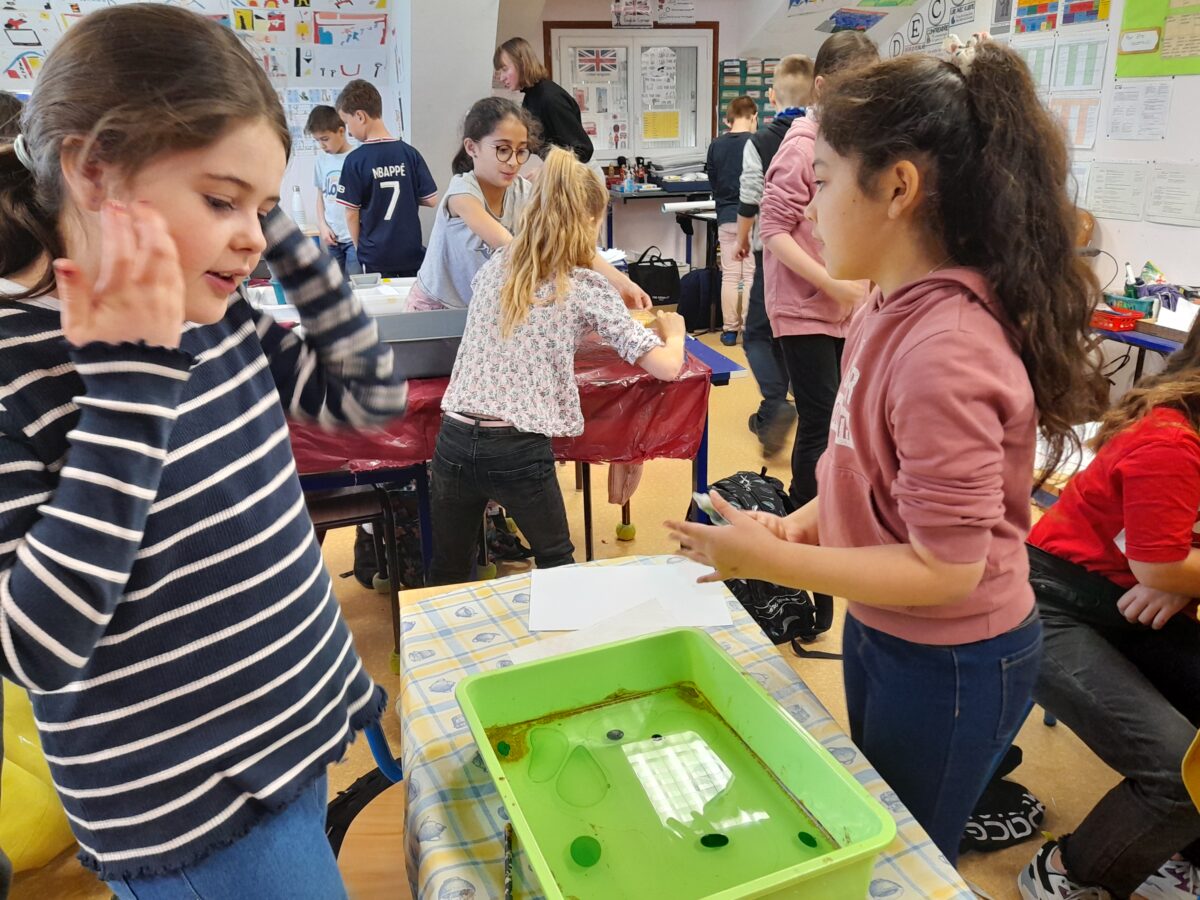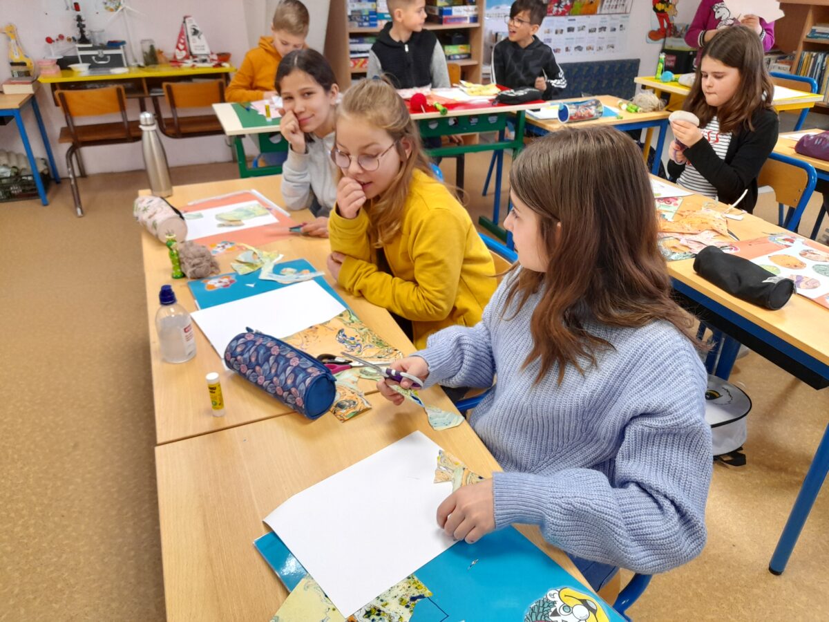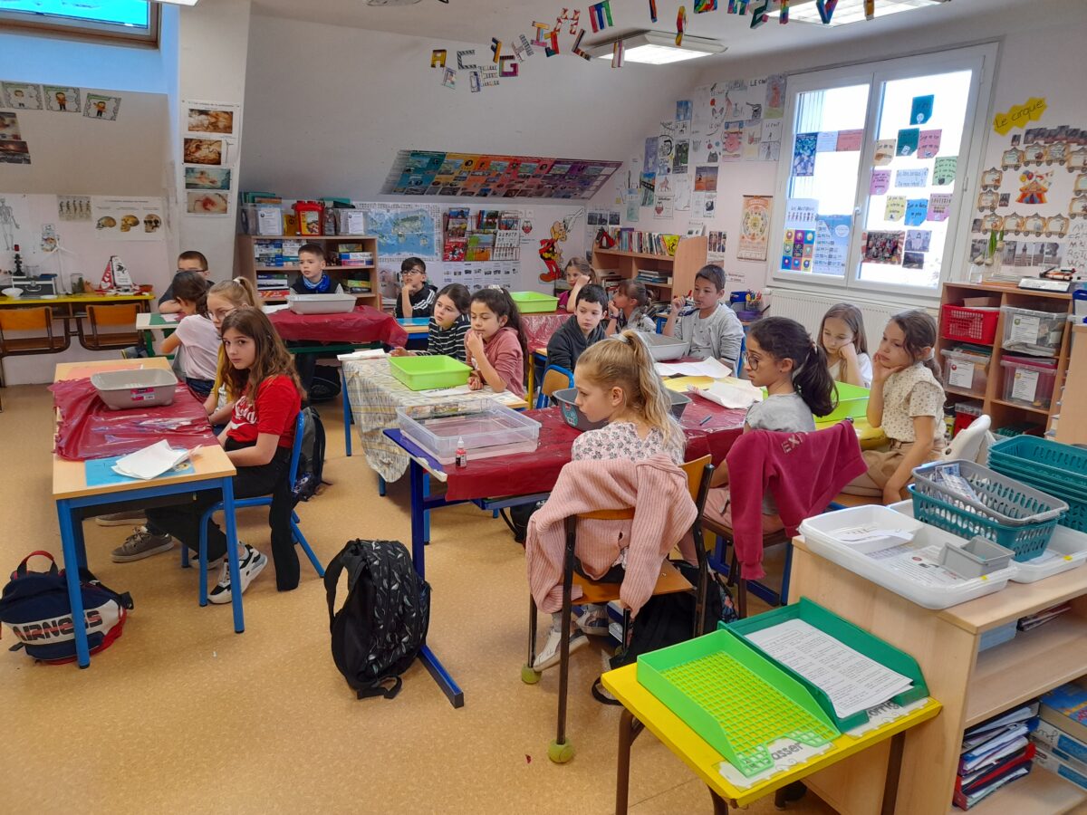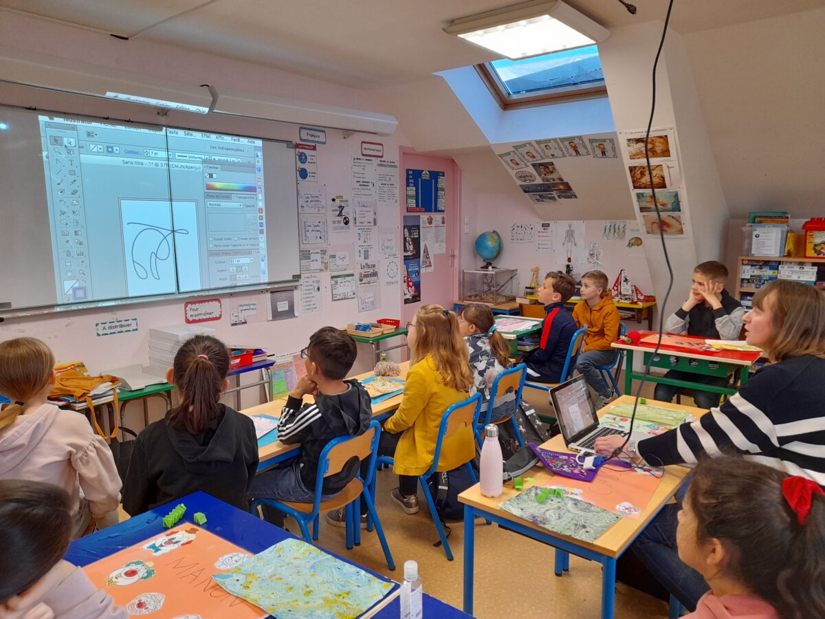 Jeudi 24 mars, Marta Orzel est venue dans notre classe. Elle s’est présentée, puis nous avons produit du papier marbré en utilisant la même technique qu’elle. Le lendemain, nous avons confectionné des paysages en utilisant ce papier marbré. C’était génial, on aurait dit de la magie. Voici une petite démonstration de Marta, puis un diaporama de nos productions et de cette belle rencontre.