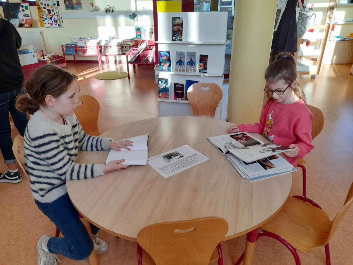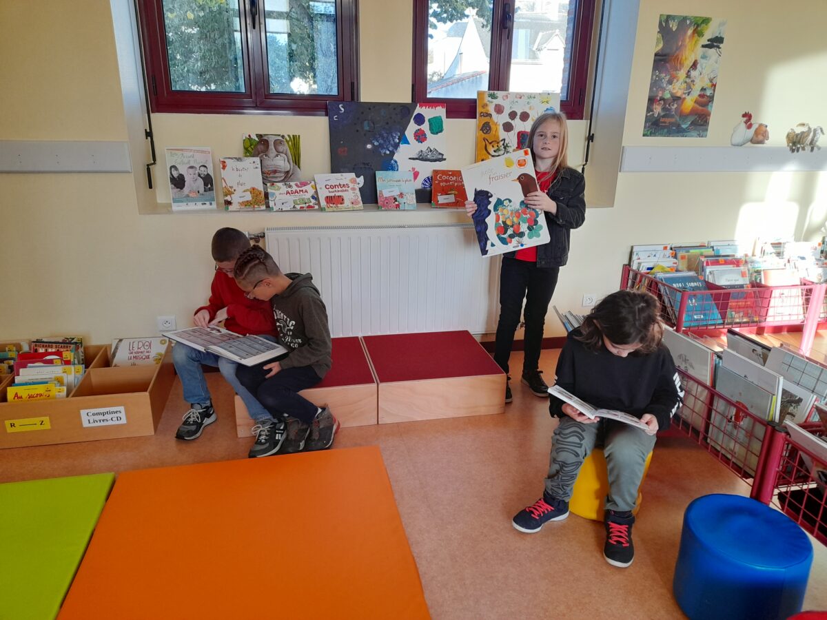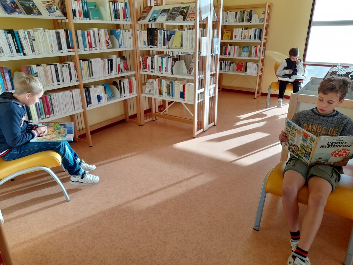 Une fois par mois, les CM1 vont à la bibliothèque de la commune : « Mille et une pages ». Chaque enfant prend du plaisir à choisir, lire des livres. Les enfants en empruntent pour la classe.