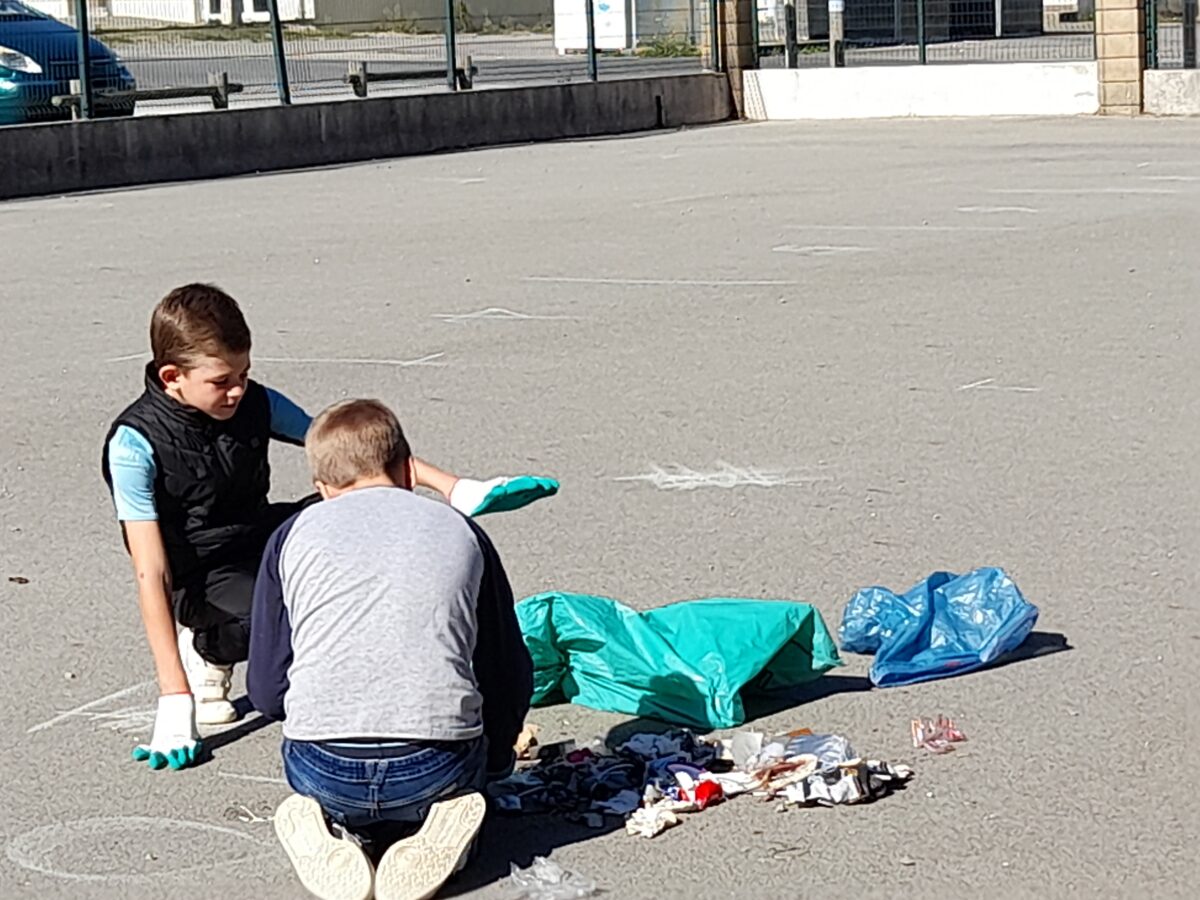 Oui, mais il fallait trier tous ces déchets. Les CM1 se sont mis à la tâche et les ont triés.