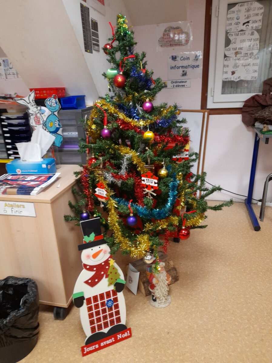 Pendant tout le long du mois de décembre, les CM1 ont fait des activités sur Noël : calendrier de l’avent, décoration de la classe et du sapin, installation de la crèche, confection de guirlandes et d’un cadeau de Noël pour leurs parents, jeux, lecture sur les traditions de Noël dans différents pays,jouer des sketchs pour l’arbre de Noël…