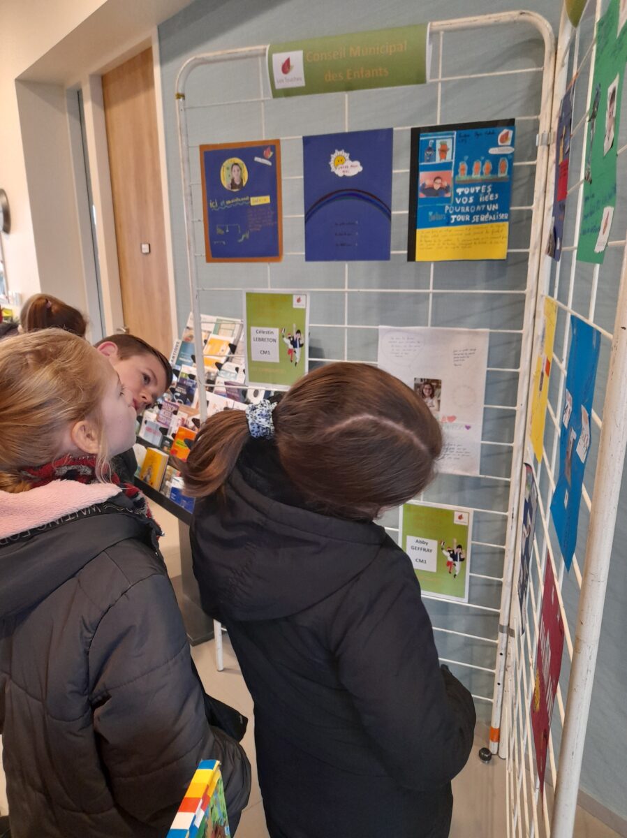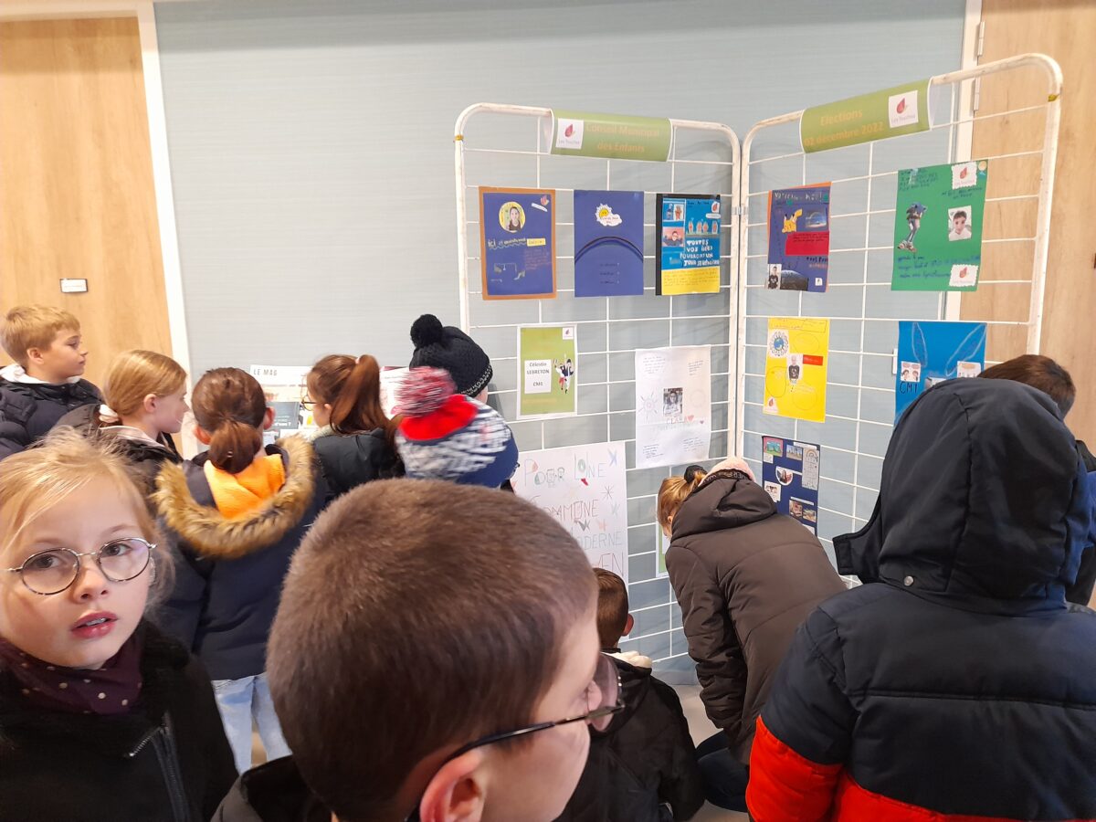 Suite à l’intervention de Mme le Maire et des conseillers sur le Conseil Municipal des Enfants à l’école, certains enfants de notre école ont déposé leur candidature. Pendant le mois de novembre, toutes les professions de foi étaient affichées en classe et sous le préau. Cela permettait aux enfants d’en discuter entre eux. Puis quelques jours avant le vote, les CM1 sont allés à la mairie observer le vrai affichage de ces professions de foi.